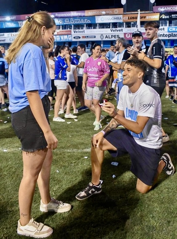 Pero la jornada tuvo un condimento especial que trascendió lo estrictamente futbolístico. En medio de los festejos, con el Monumental colmado de emoción y banderas celestes y blancas, el jugador de la Crema Agustín “el Kata” Alfano protagonizó un momento que conmovió a todos: le pidió casamiento a su novia, Maribel, desatando aplausos, lágrimas y una ovación de todos los hinchas que los rodeaban.