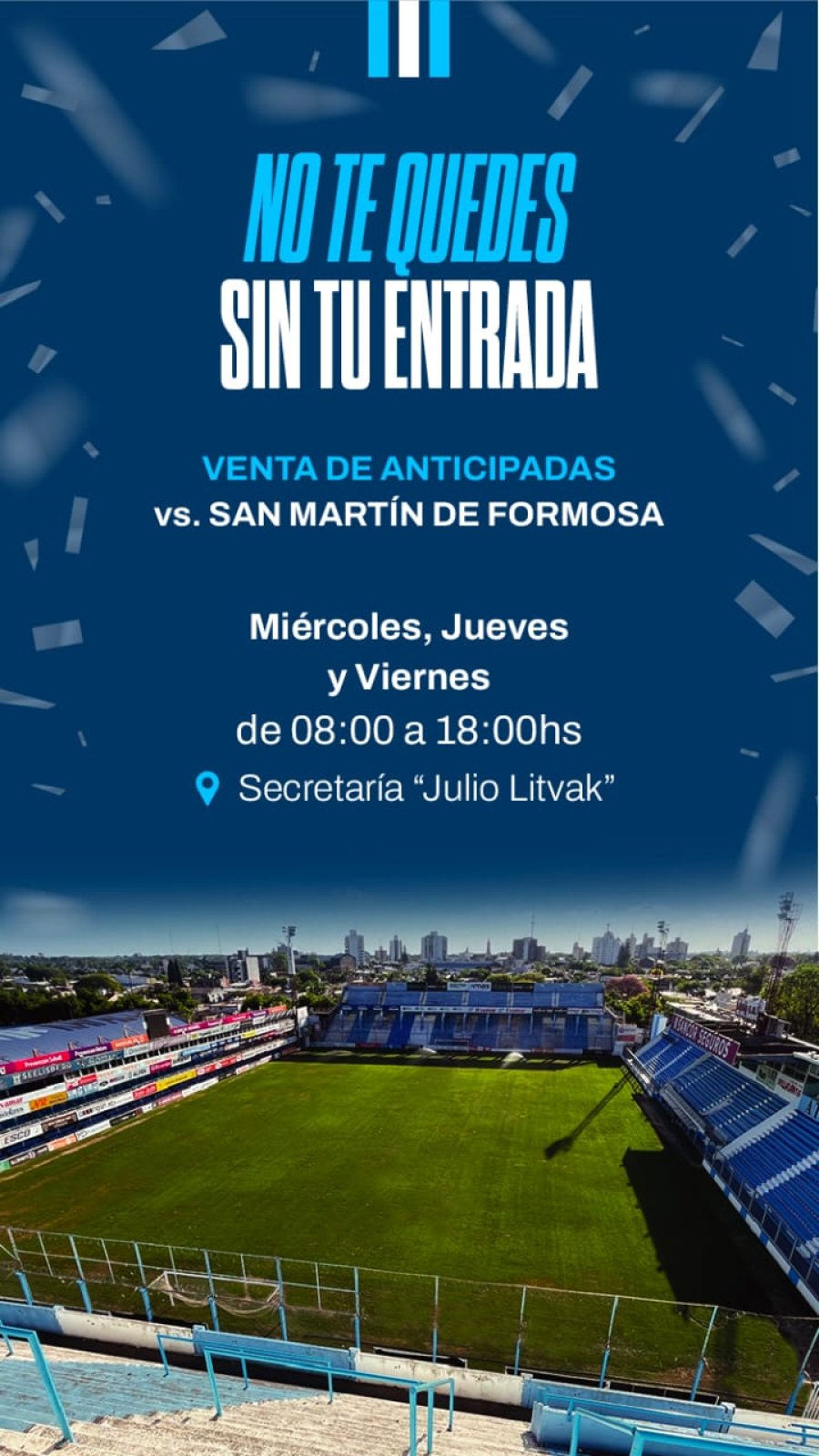 El duelo ante San Martín de Formosa, en el encuentro revancha de la final de la Reválida del Federal A, se disputará en el Monumental el domingo a las 18.30 y en tal sentido el Club informó este cronograma de expendio de localidades: