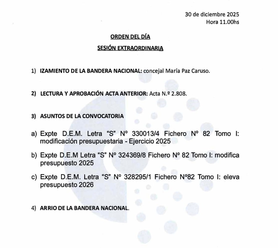 Recordemos que el viernes, en una extensa reunión que quedó inconclusa, se dialogó sobre modificaciones presupuestarias necesarias del año 2025, y luego se abordó el Presupuesto 2026, idéntica agenda para esta mañana del lunes.