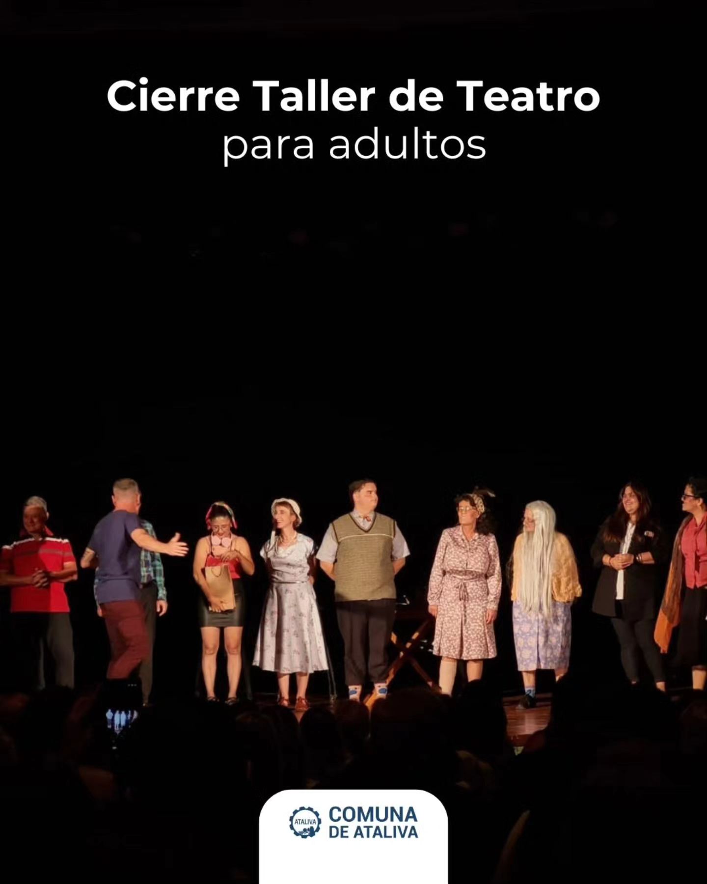 ATALIVA.- La Comuna local puso de relieve que con una última función abierta al público, se realizó el cierre anual del Taller de Teatro para Adultos, que coordina Gabriel Fiorito, espacio que reúne a vecinas y vecinos de nuestra localidad interesados en la expresión artística y el trabajo escénico.