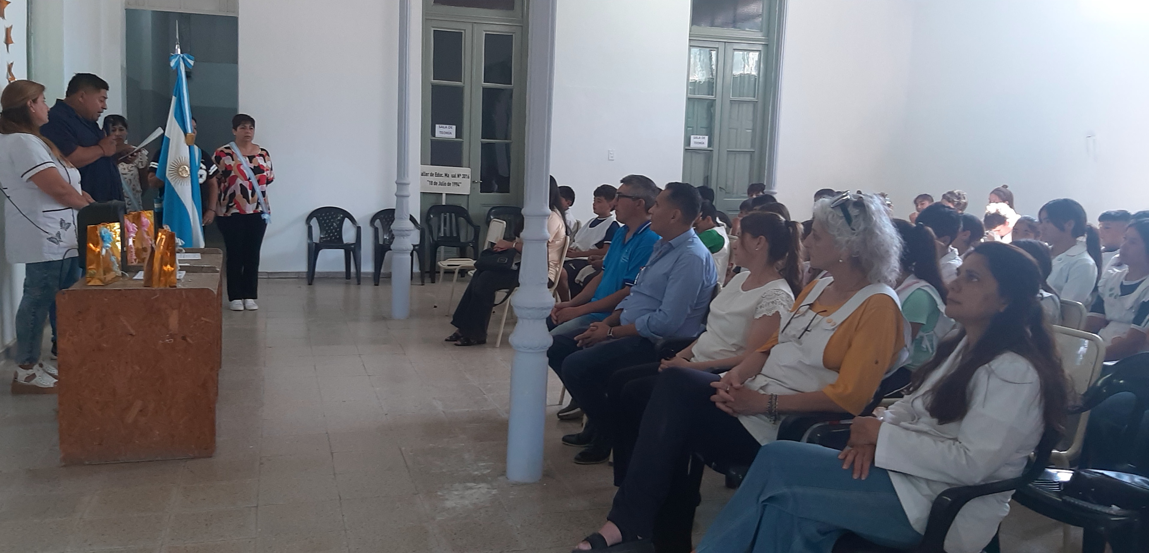La ceremonia contócon la presencia de Marcelo Lind y Mariela Lastra, presidente y vice de la Comuna local; Cecilia Avallay, supervisora de Taller Manual; Cristián Martínez, director del Taller de Educación Manual; Claudia Defagot, directora de la Escuela Primaria Nº 462; Claudia Colombatti, directora de las Escuela Primaria Nº 6054;