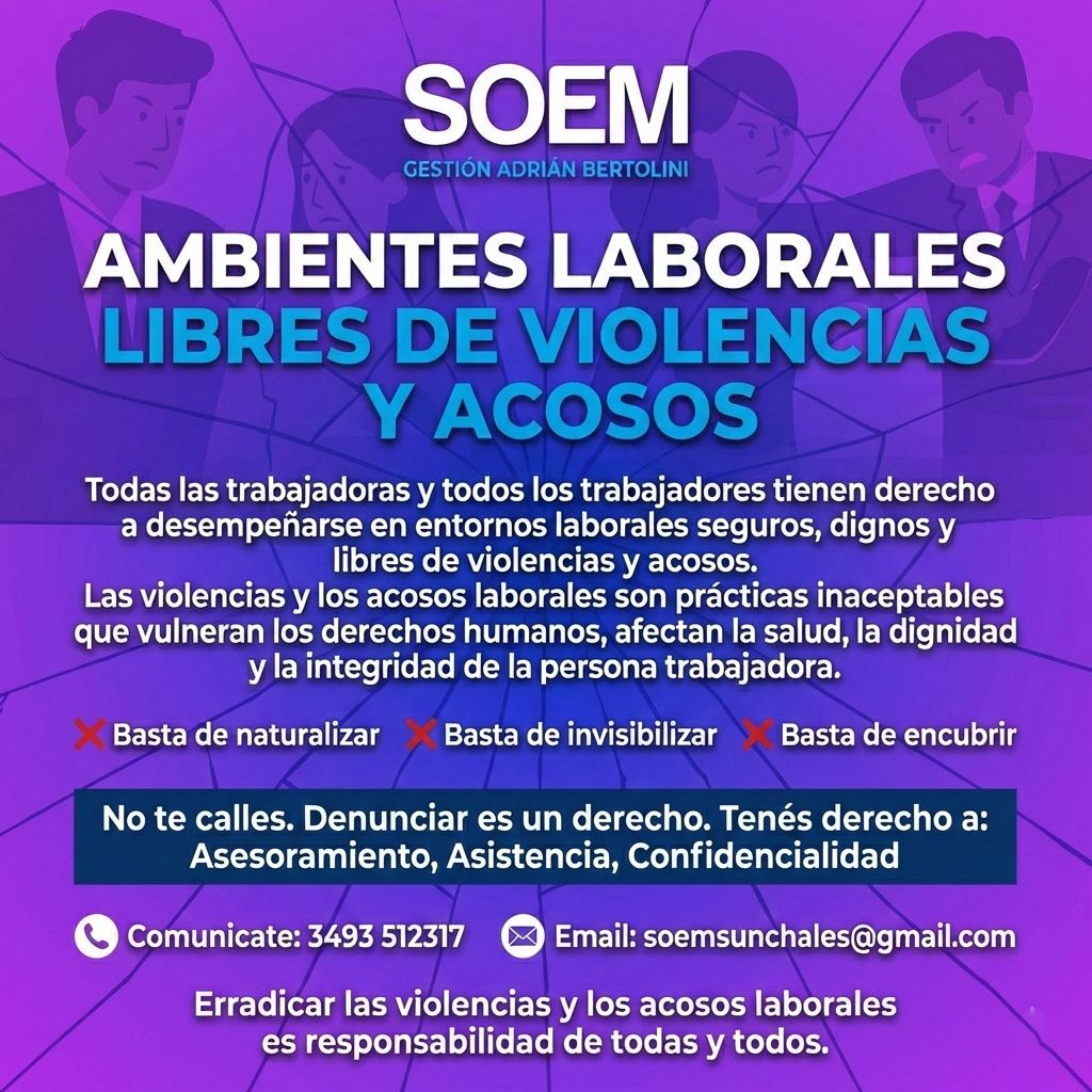 SUNCHALES ( De nuestra Agencia).- El Sindicato de Obreros y Empleados Municipales puso especial énfasis acerca de los derechos que asisten a los trabajadores ante el acoso laboral.
