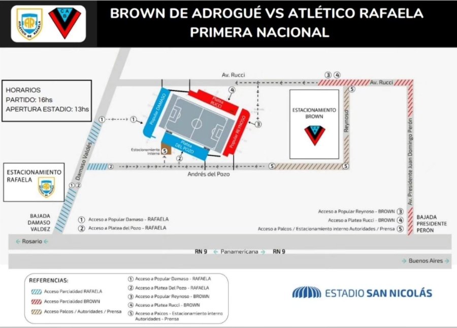 Las puertas del estadio se abrirán a las 13hs. El estacionamiento para los hinchas de la Crema estará sobre Damaso Valdéz, ocupando luego la popular Damaso y la Platea Andrés Del Pozo.