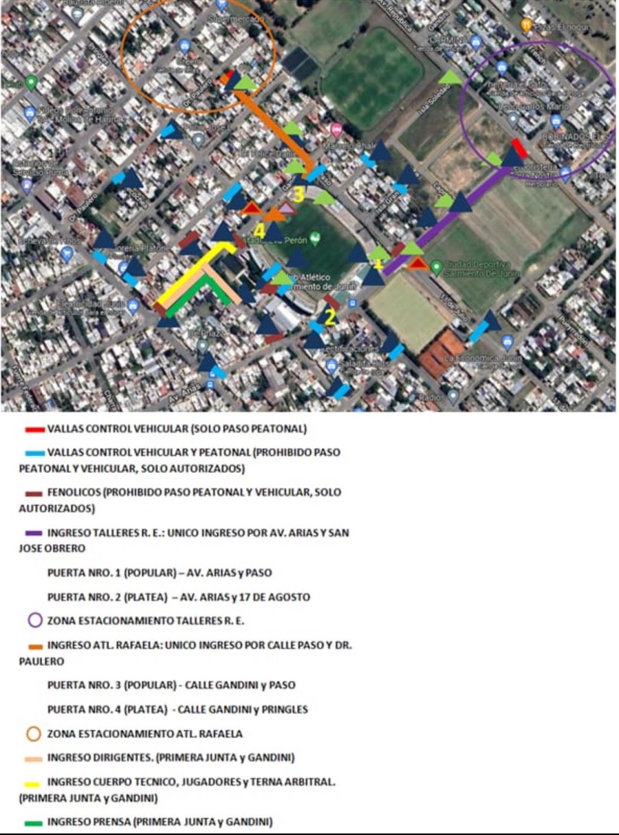 Los simpatizantes de Atlético Rafaela accederán por calle Paso y Dr. Paulero por Puerta N°3 (General) y Puerta N°4 (Platea).