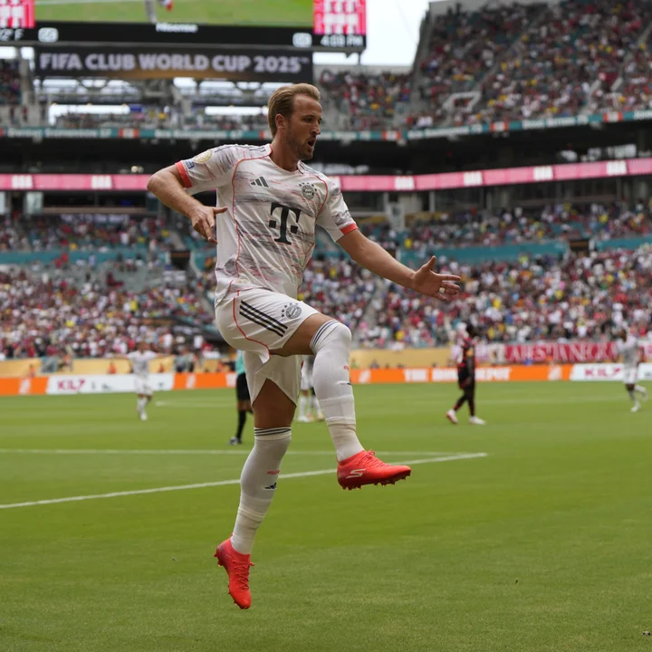 Harry Kane festeja su primer gol de la tarde, que amplió la ventaja del Bayern Múnich a los nueve minutos. Crédito: FOTO NA
