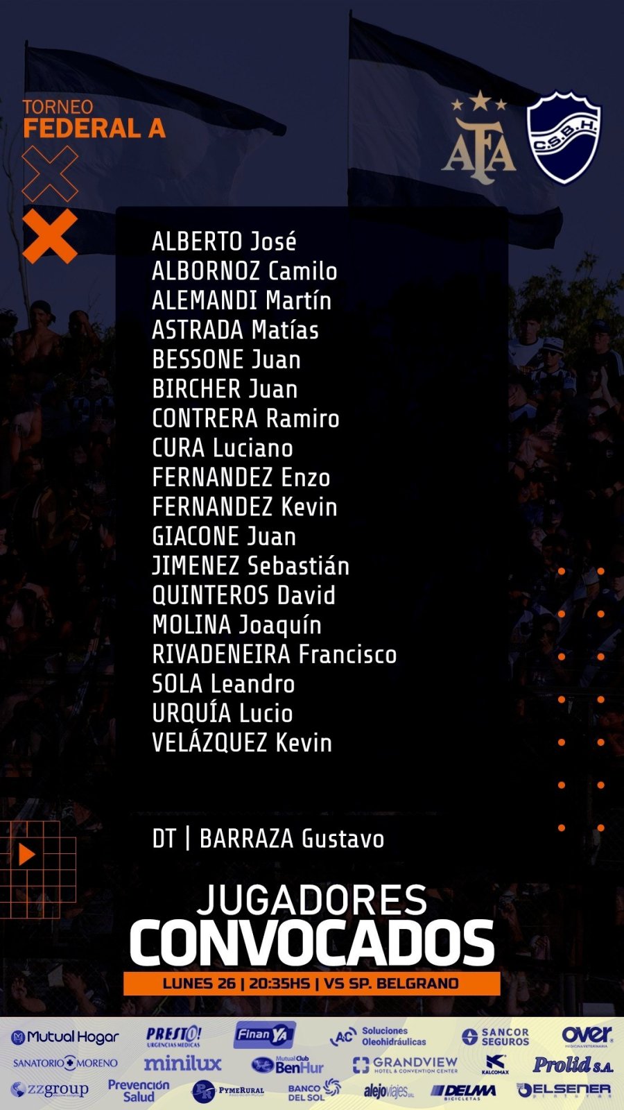 Ben Hur: Matías Astrada; José Alberto o Lucio Urquía, Luciano Cura, Leandro Sola y Martín Alemandi; Enzo Fernández, Camilo Albornoz, Juan Bessone y Sebastián Jiménez; Kevin Velázquez o Urquía y Juan Cruz Giacone. DT: Gustavo Barraza.