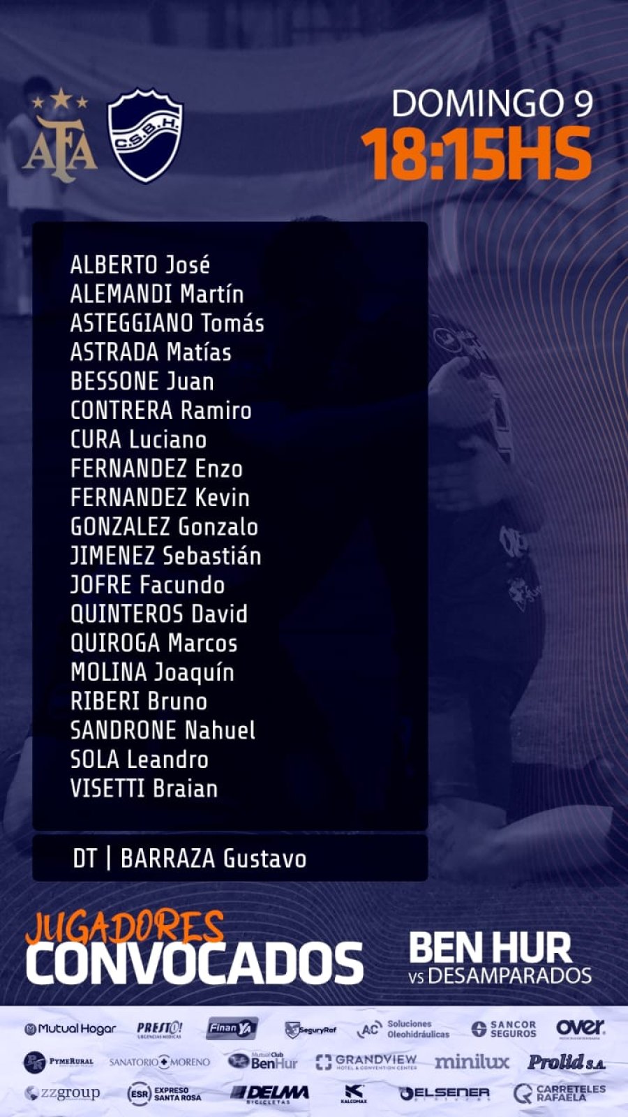 El entrenador Gustavo Barraza, como es habitual cuando el Lobo juega fuera de Rafaela, dispuso una convocatoria de 19 futbolistas.