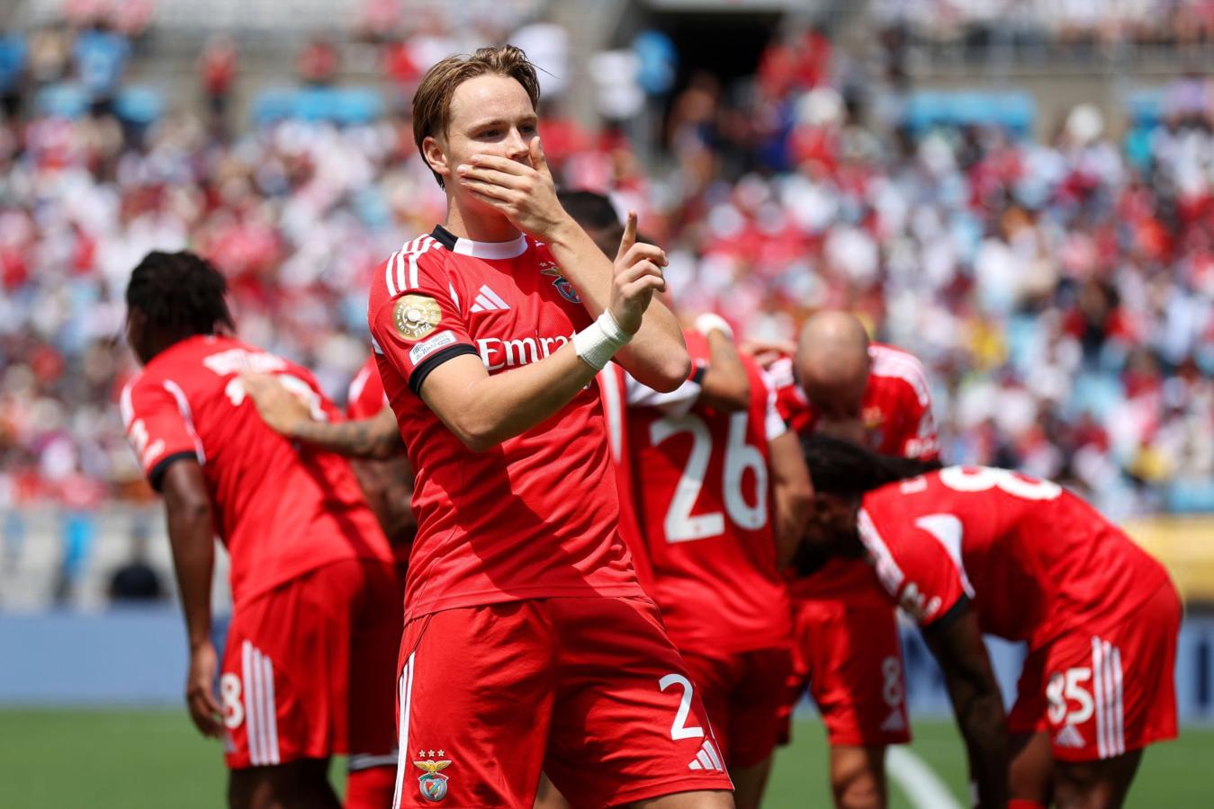El cero se rompió a los 13 minutos con el gol de Schjelderup tras recibir un centro rastrero de Aursnes en una acción iniciada por Di María.