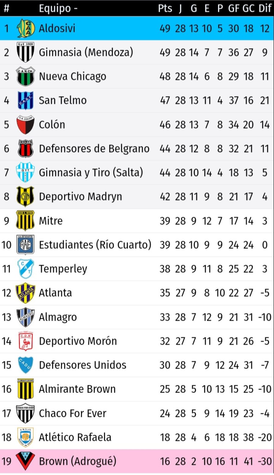 Por su parte, el conjunto de Rodo De Paoli llega a 46 unidades y se ubica quinto en la tabla a tres puntos del líder, Aldosivi.