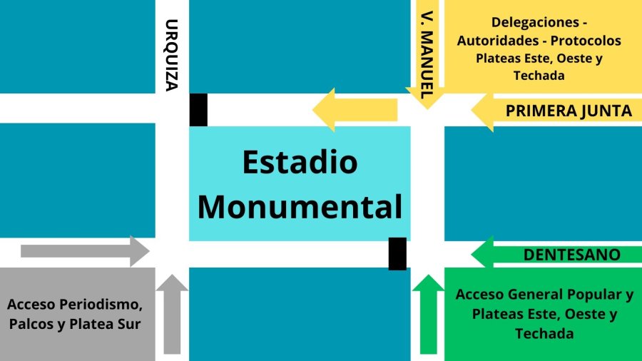 - Plateas y Palcos Sur (ingreso por Lucio Casarín): Urquiza y Dentesano (de Oeste a este).