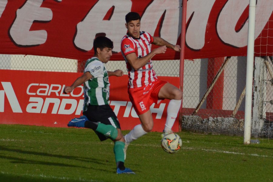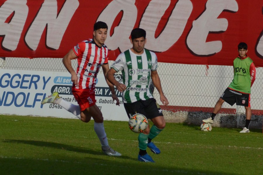 Al conjunto juliense le costó conectarse en el primer tiempo. El elenco bonaerense se ordenó bien de media cancha hacia atrás y no le dejó resquicios a los volantes y delanteros locales para desnivelar. Por eso sus principales intentos fueron con remates de media distancia, uno de Salcedo que pegó en el travesaño, y otro de Del Sole, que se fue apenas alto.
