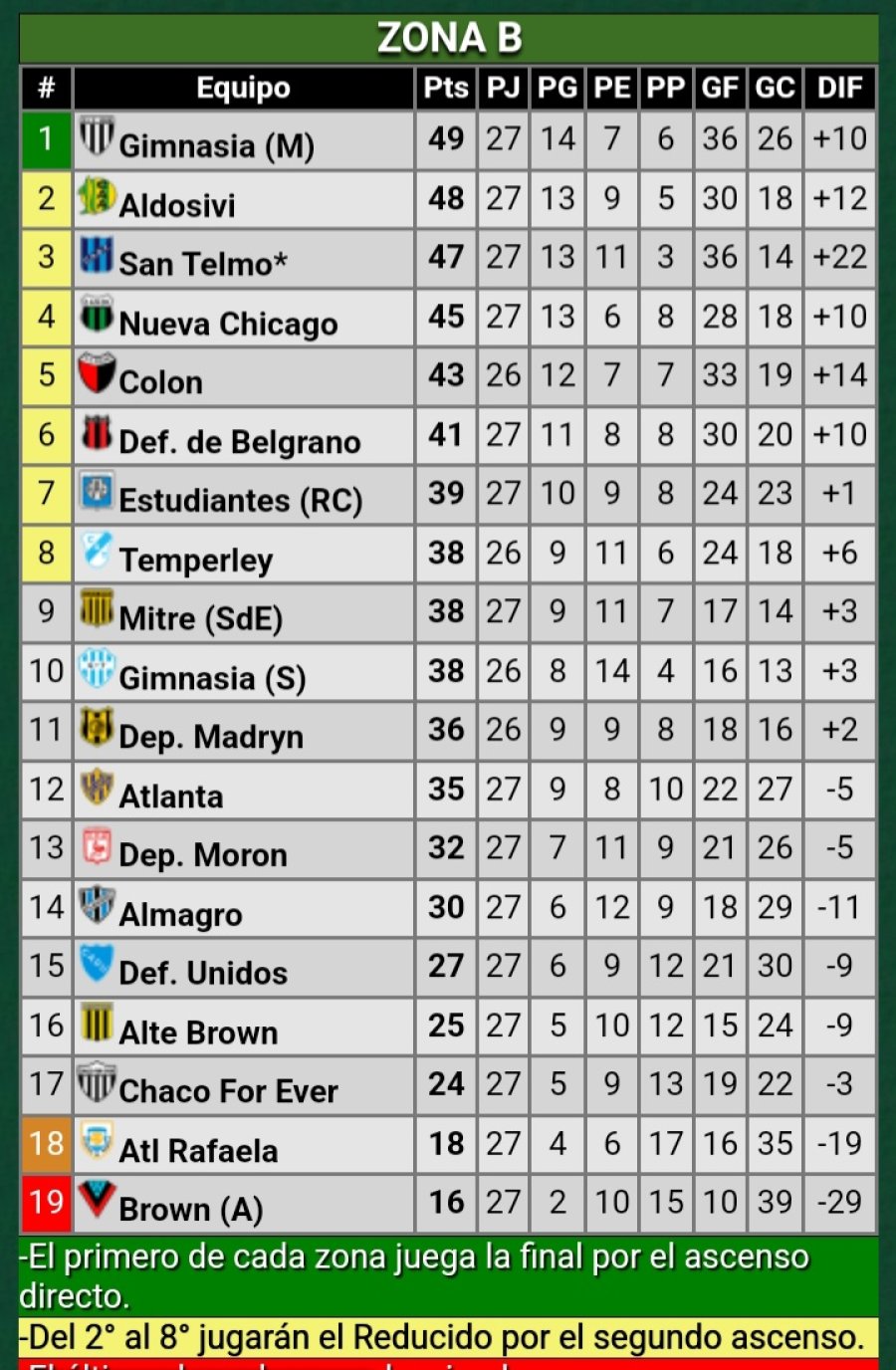 Este lunes se completará la fecha 27 con dos partidos: a las 15.30 Gimnasia y Tiro de Salta recibirá a Colón de Santa Fe, que tendrá el debut como técnico de Rodolfo De Paoli. Luego, a las 21.10, Temperley será anfitrión del Dep. Madryn.