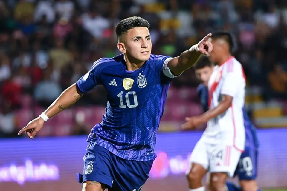 Thiago Almada, a los 8 minutos del segundo tiempo de penal, y Luciano Gondou, en 42 del complemento, anotaron los goles del elenco argentino, que ahora lidera la zona junto con Paraguay, con cuatro unidades cada uno, pero el combinado albiceleste se encuentra primero por diferencia de gol.