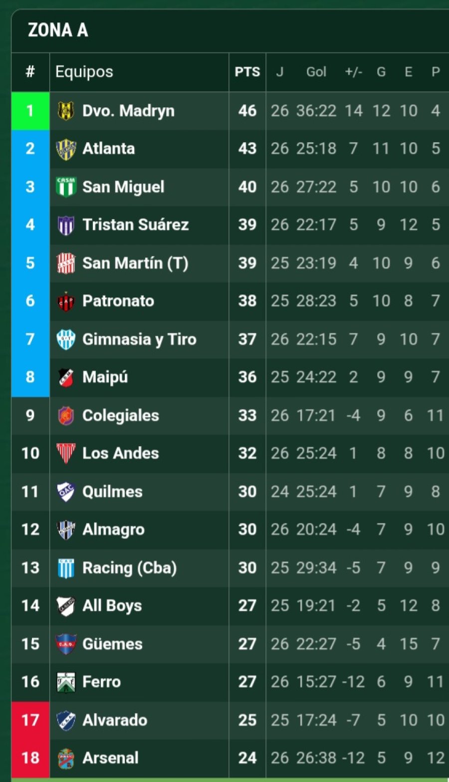 Con este resultado, el equipo dirigido por Martín Minella quedó a 13 puntos del Reducido (con 24 en juego) y a 11 de los puestos de descenso, que hoy por hoy tienen a CADU y Talleres de Remedios de Escalada perdiendo la categoría.