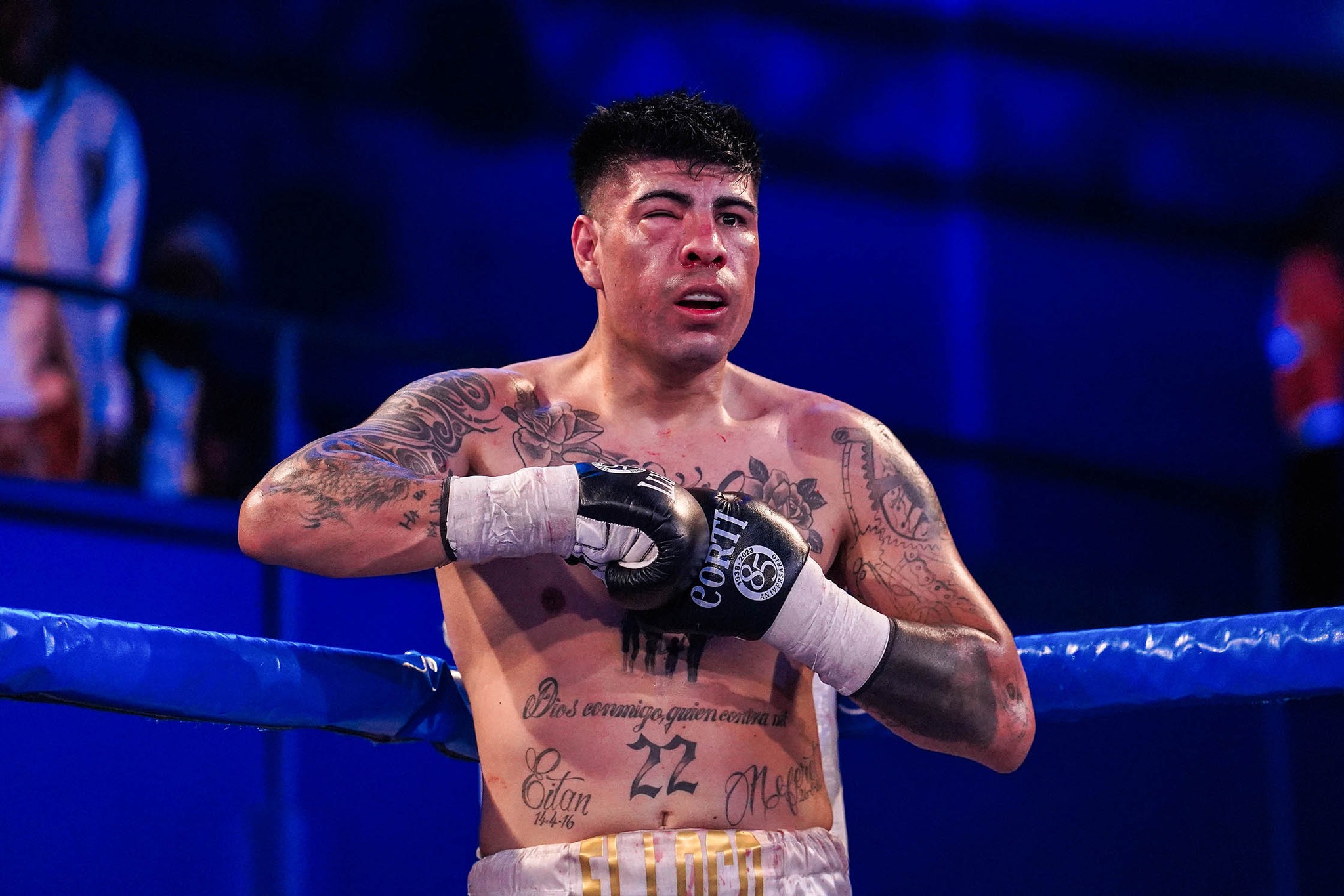 Con sus aciertos, Benítez provocó la lesión en el ojo derecho a Díaz que le impedía ver con claridad. Por eso, y luego de recurrir al médico, el árbitro Rubén Figueroa dio por finalizada la contienda.