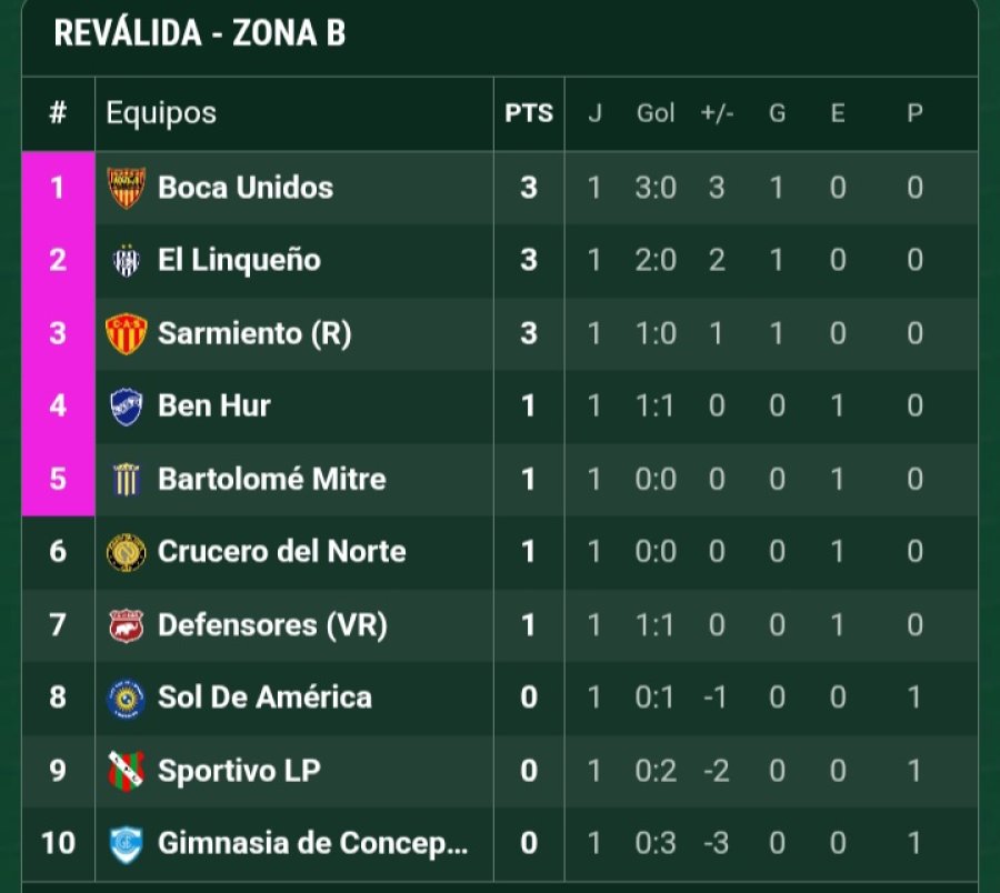 Segunda fecha: Sarmiento (R) vs. Sportivo Las Parejas; El Linqueño vs. Gimnasia (CdU); Bartolomé Mitre vs. Defensores de Belgrano; Boca Unidos vs. Ben Hur y Crucero del Norte vs. Sol de América.