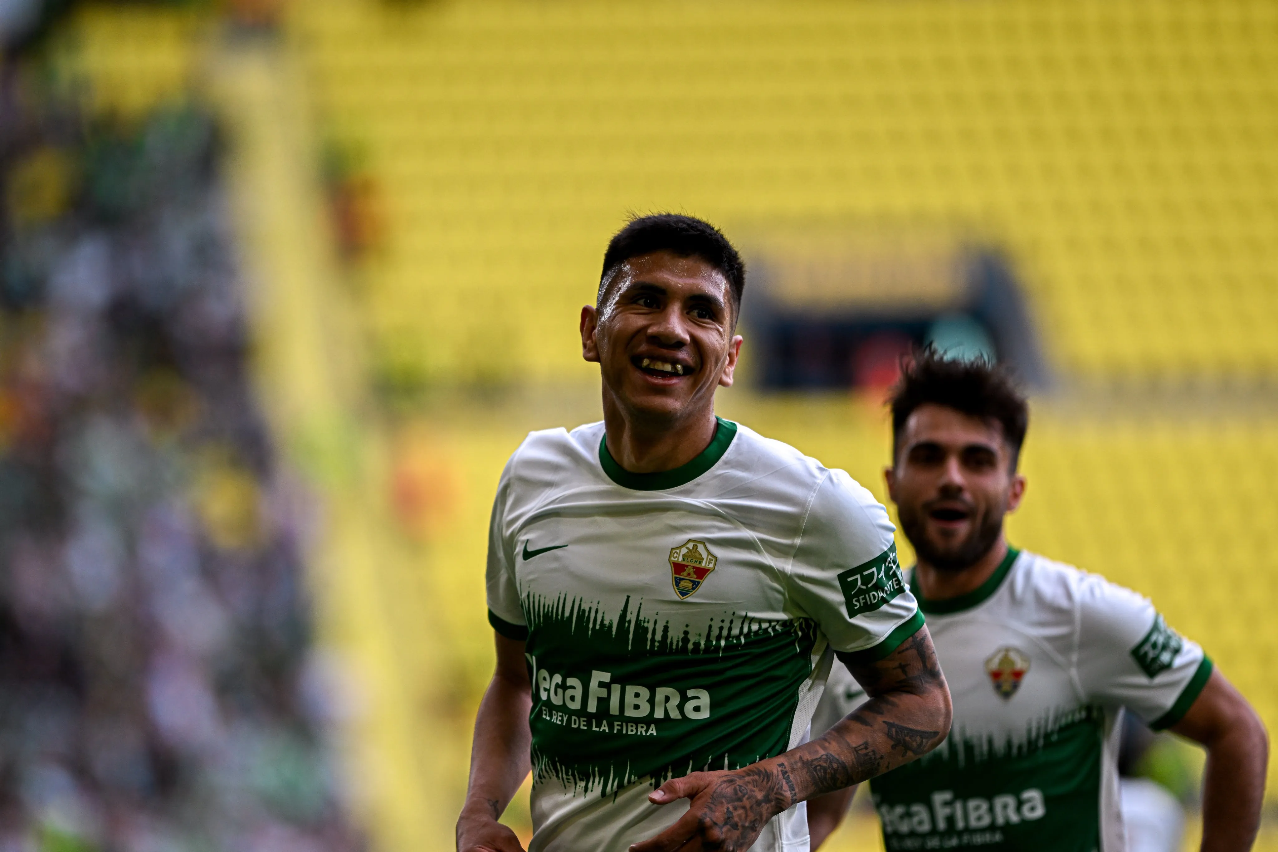 El 0-1 no cambió el guión del choque. El Elche continuó apretando arriba y volvió a llegar con peligro por mediación de Mourad y Nico Espinosa antes del descanso, al que se llegó con ventaja franjiverde y cambio arbitral por lesión del catalán Ávalos Barrera.