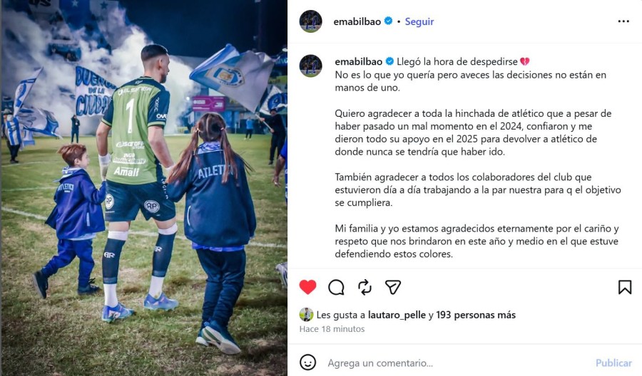 “No es lo que yo quería pero a veces las decisiones no están en manos de uno”, expresó Bilbao, quien fue una pieza clave en el proceso de reconstrucción del equipo, especialmente luego del difícil 2024. En su despedida, el guardameta agradeció el respaldo de la gente y el acompañamiento recibido durante su etapa en la institución.