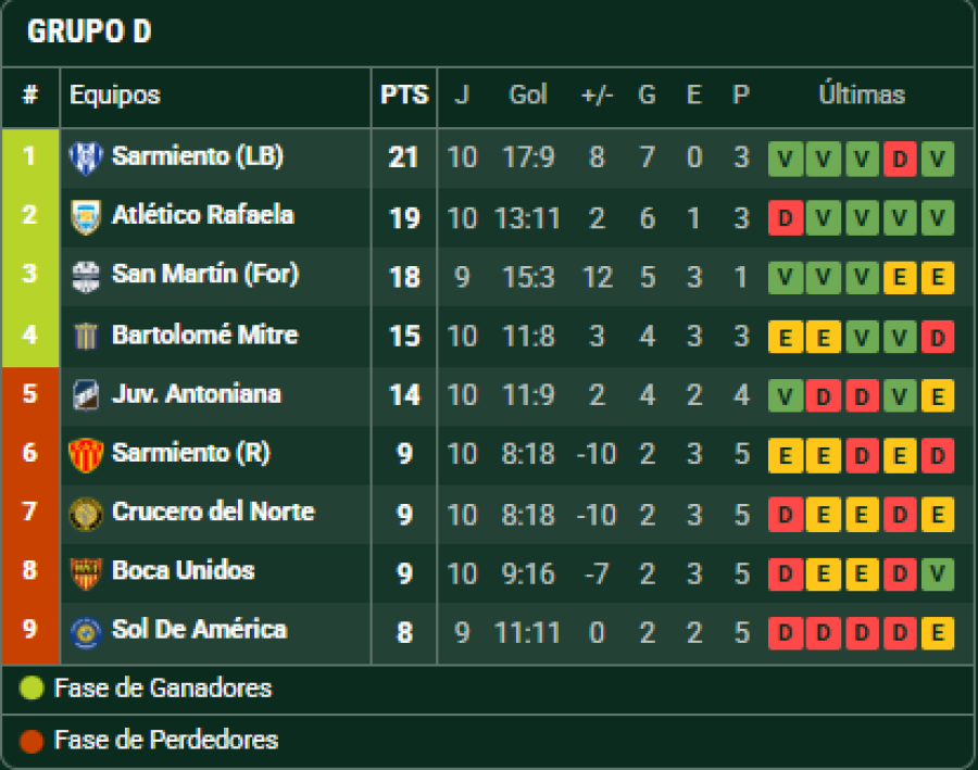 Este domingo se completó la fecha 11 de la zona 4 y la Crema ya no es líder. Sarmiento de La Banda le ganó 2-0 a Crucero del Norte, próximo rival del elenco rafaelino, y quedó como único líder del grupo.