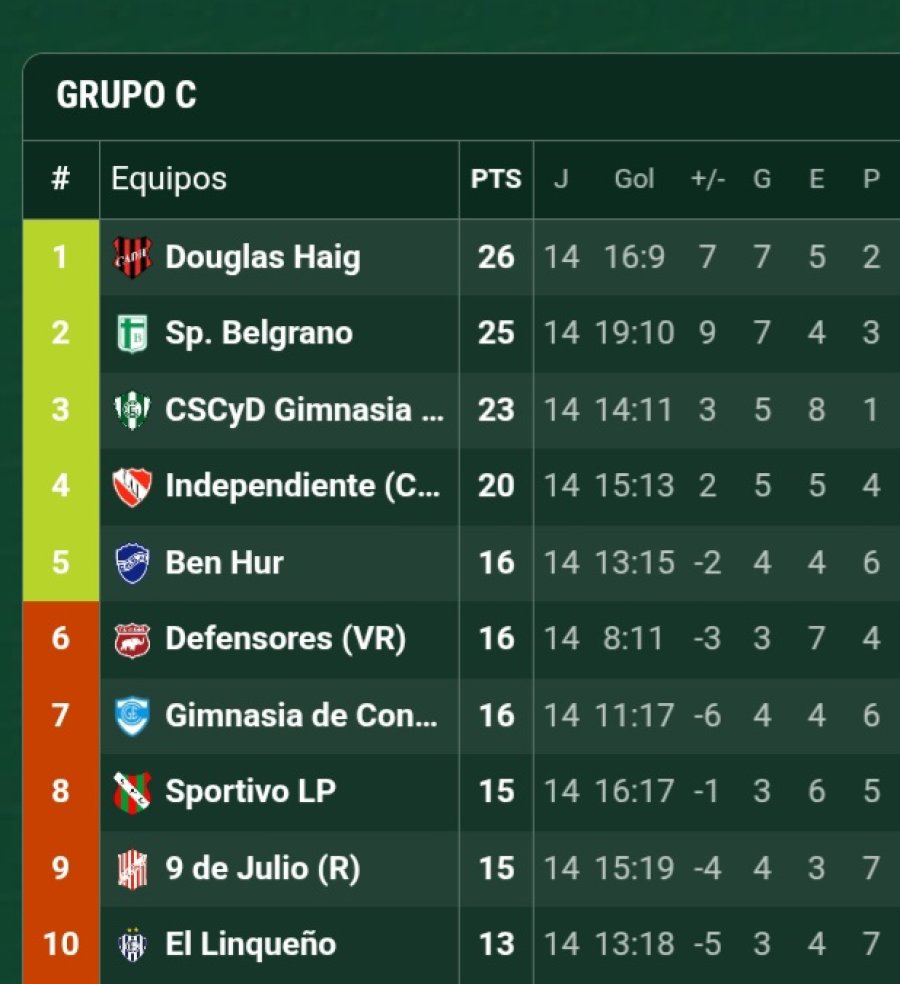 Otro dato saliente de la fecha es que Sportivo Belgrano cedió la punta, que ahora le pertenece a Douglas Haig de Pergamino, que el sábado derrotó por 1 a 0 a Gimnasia de Concepción del Uruguay.