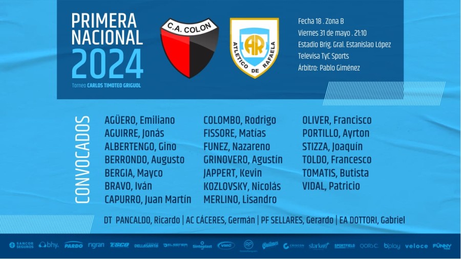 Con la baja confirmada del capitán y referente, Lucas Albertengo, el entrenador Ricardo Pancaldo confirmó los 20 convocados para enfrentar al Sabalero.