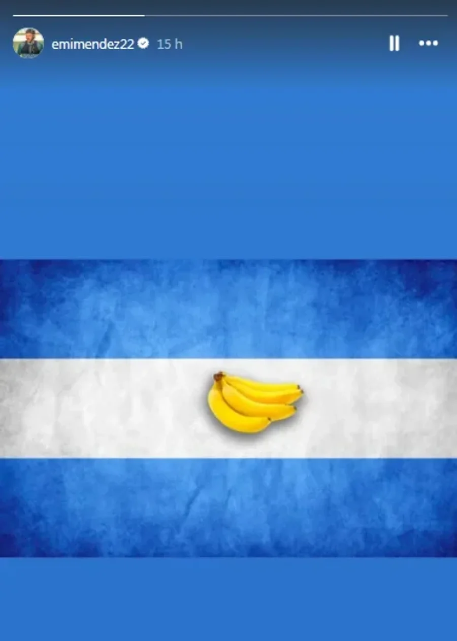 Finalmente, Emiliano Méndez, exmediocampista de Sarmiento y Gimnasia, subió una historia de Instagram con una bandera argentina acompañada de un racimo de bananas, en un mensaje críptico pero que muchos interpretaron como una crítica velada a la Corte.