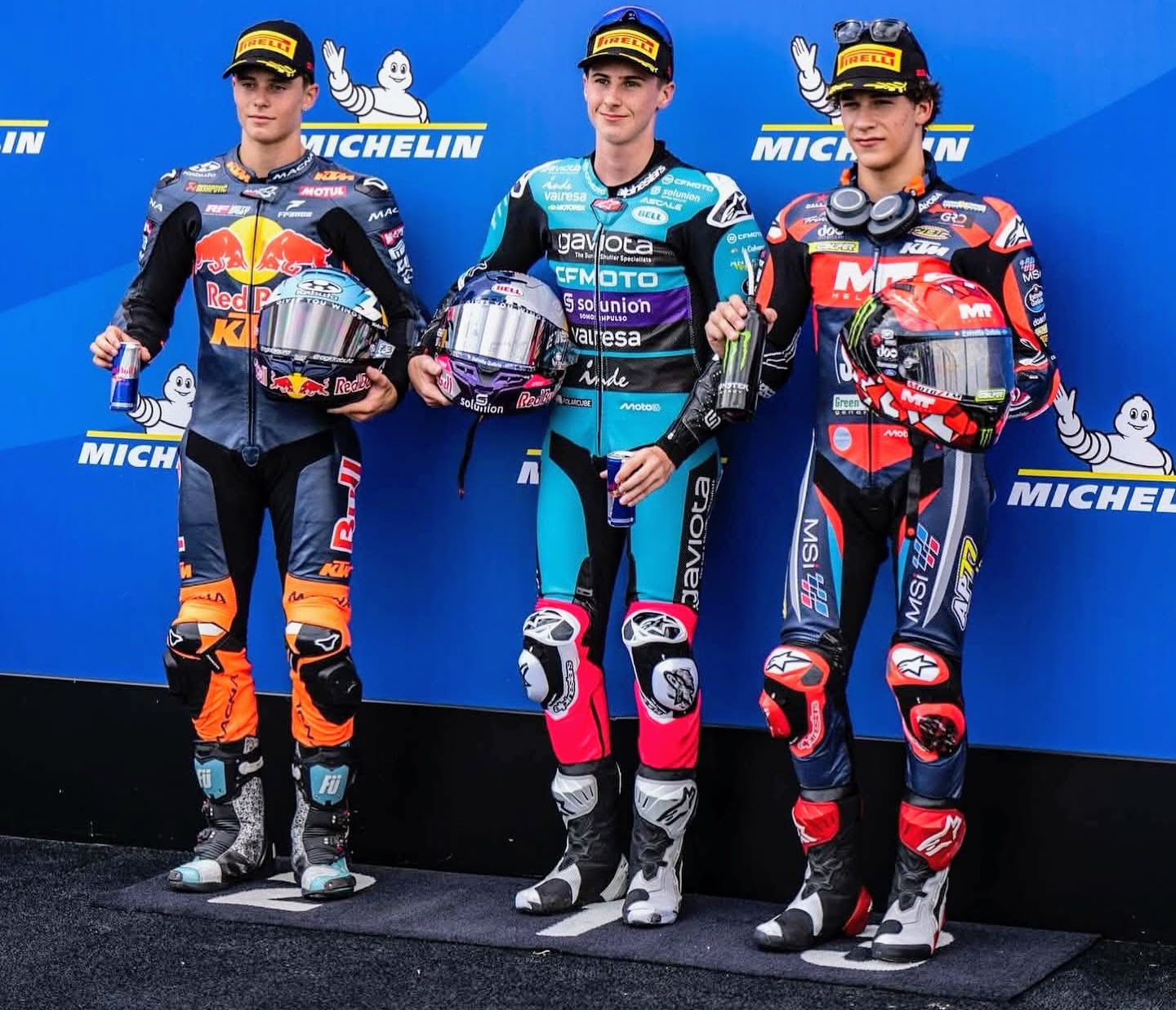 Jacob Roulstone (Red Bull KTM Tech3) clasificó séptimo y se ubicará en la tercera fila con José Antonio Rueda (Red Bull KTM Ajo) -actual líder del certamen- y Adrián Fernández (Leopard Racing), mientras que David Almansa (Leopard Racing) cerró el Top 10.