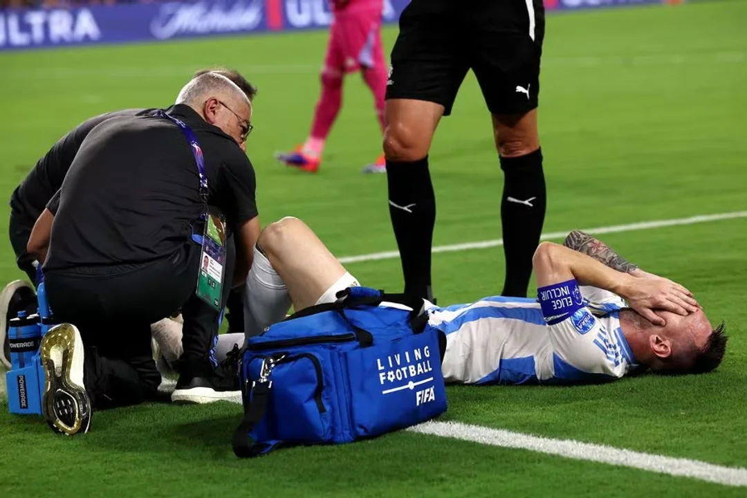 Corrían 20 minutos de un reñido segundo tiempo entre argentinos y colombianos cuando el futbolista de 37 años, que estaba corriendo de atrás a Luis Díaz, piso de mala forma en el sintético del Hard Rock stadium e, inmediatamente, se tiró al piso por una molestia en la parte posterior de la pierna derecha. El rosarino ya venía incomodo desde su disputa del balón con Santiago Arias en la primera parte en la que el colombiano le raspó el tobillo.