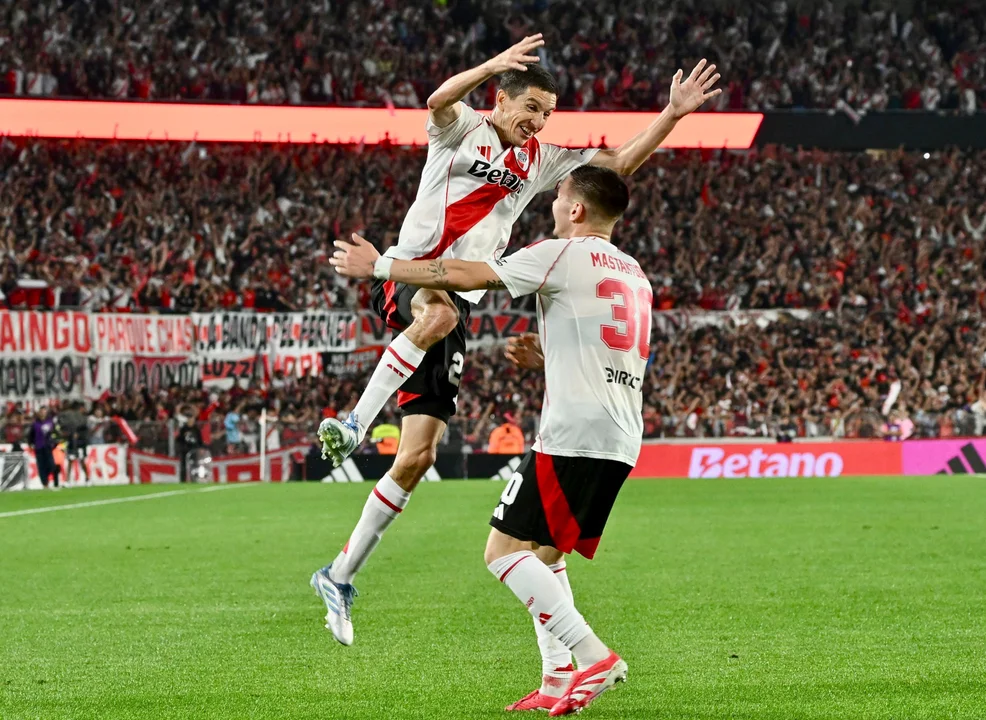El “Millonario” amplió la ventaja a los 27 minutos de la primera parte. “Nacho” Fernández llevó la pelota por el medio y asistió a Facundo Colidio, que recibió sobre el borde izquierdo del área y, tras dos enganches hacia la derecha, remató con efecto al segundo palo y puso el 2-0.