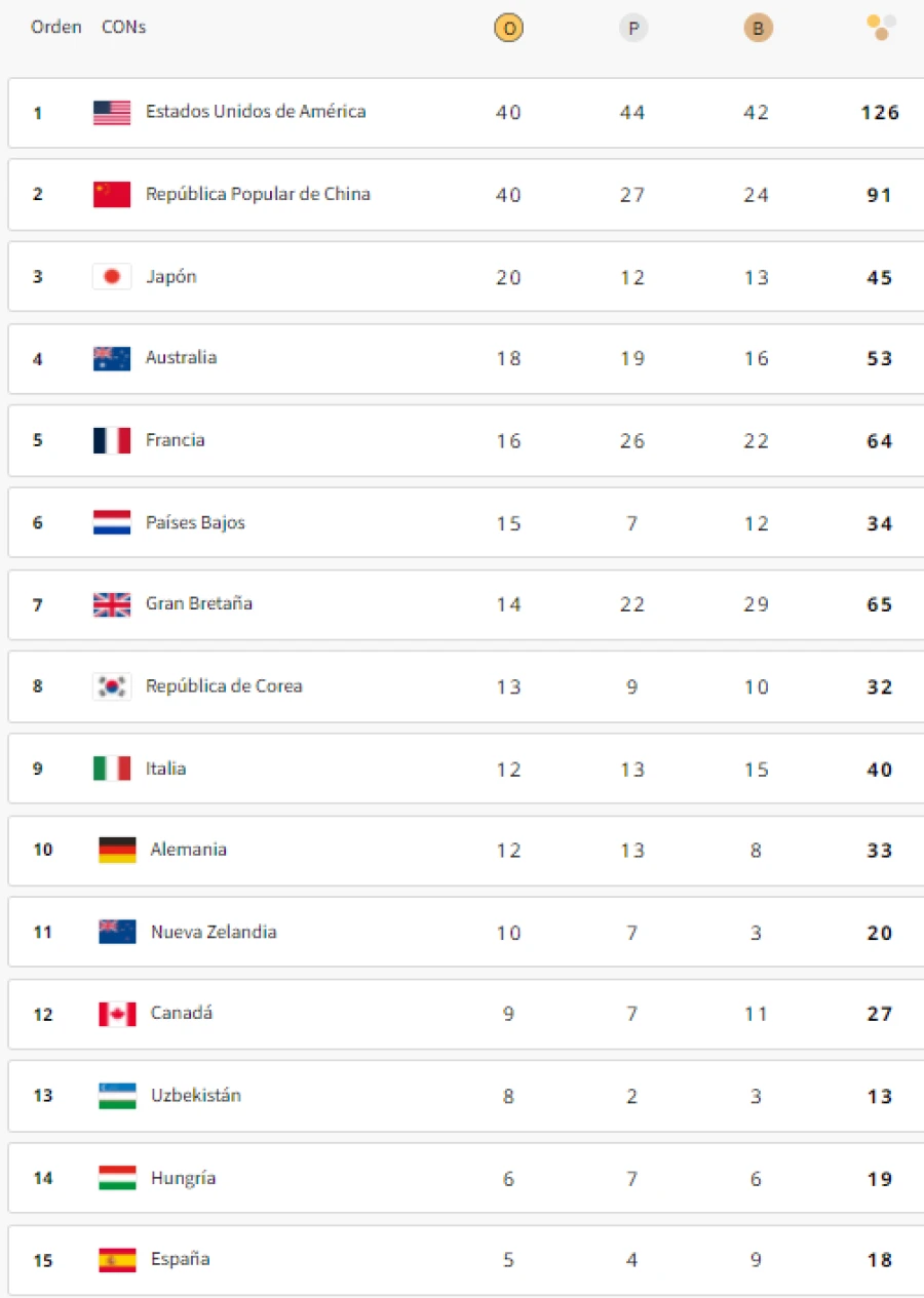 Si se observa el “ranking económico” al que hacemos referencia, tomando como fuente al Fondo Monetario Internacional, entre los diez primeros se repiten seis del Top Ten del medallero de París 2024. Australia y Corea, también de gran actuación olímpica, están 12 y 13 en el ranking de esos paises más desarrollados.