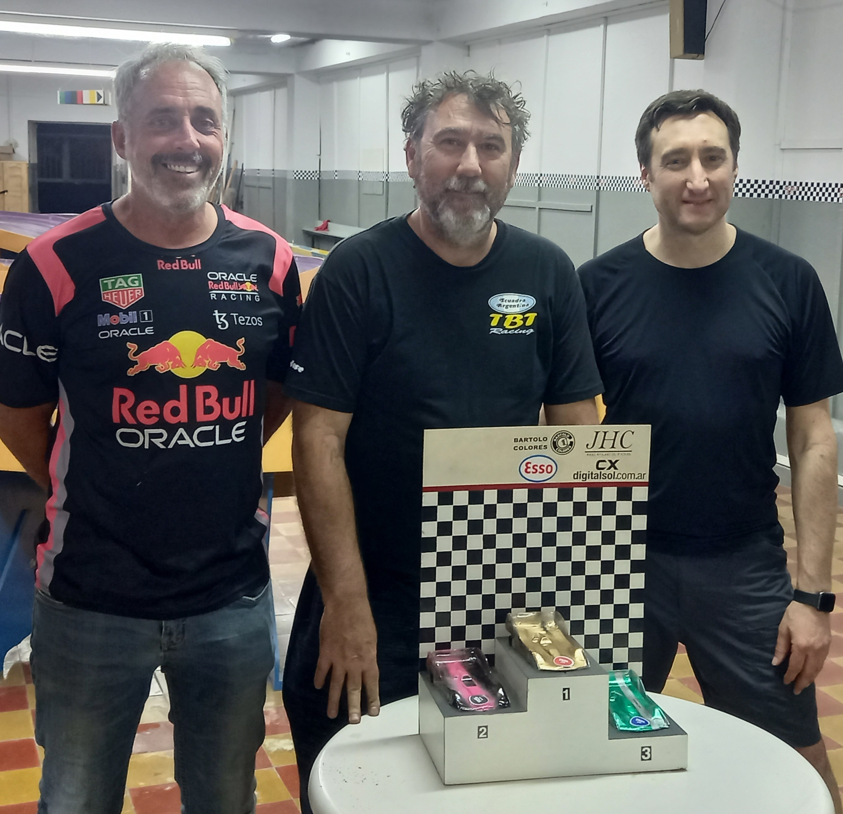 PODIO. José Picotto (2º), José Foti (1º) y Juan Kilgelmann (3º). Crédito: PRENSA RAFAELA SLOT