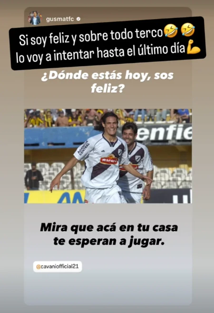 Quien dio inicio al intercambio fue el actual entrenador de Danubio, quien publicó una historia en la que se ve a Cavani festejando un gol con la camiseta de “La Franja”, la cual fue acompañada por la pregunta “donde estás, ¿sos feliz?” y la frase “en tu casa te esperan para jugar”.