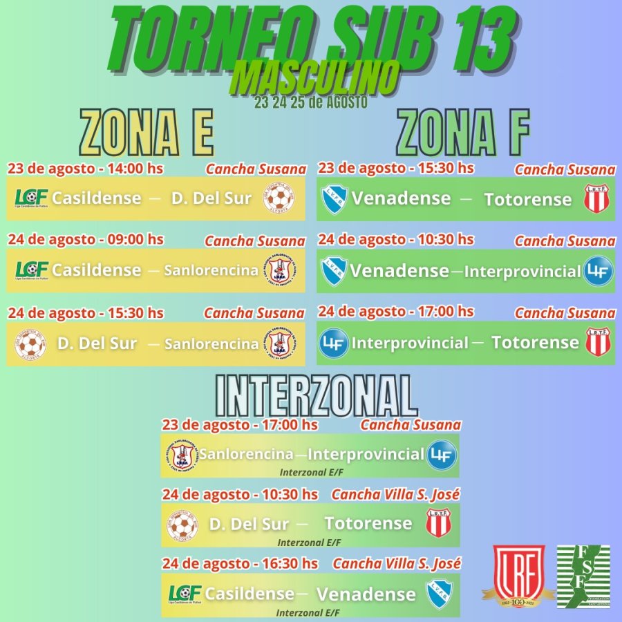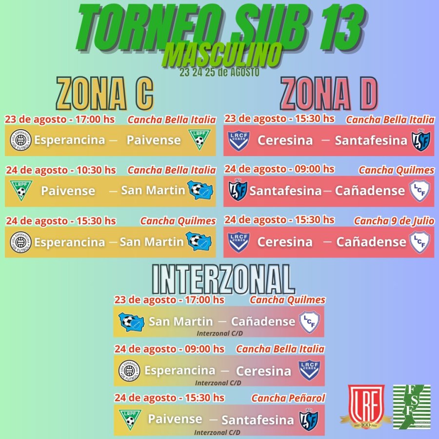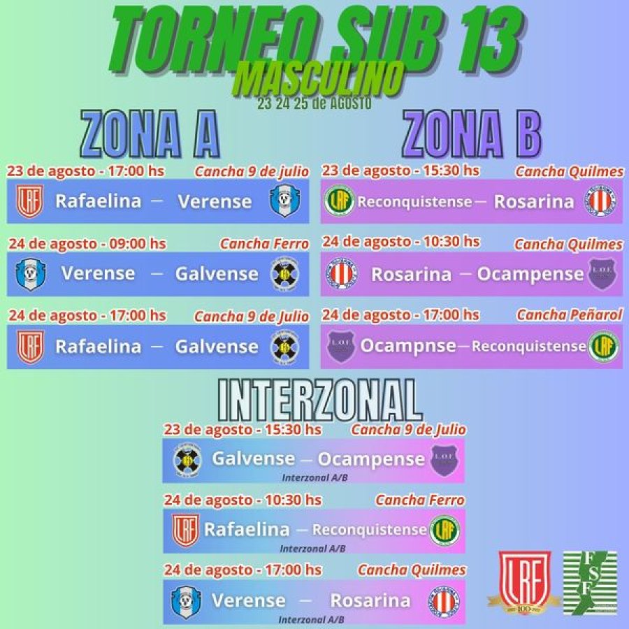 El Torneo Provincial Sub-13 de Selecciones de fútbol masculino tendrá lugar, durante este 23, 24 y 25 de agosto, en la jurisdicción de Liga Rafaelina de Fútbol. Esto conlleva a tener partidos en Rafaela y la región.