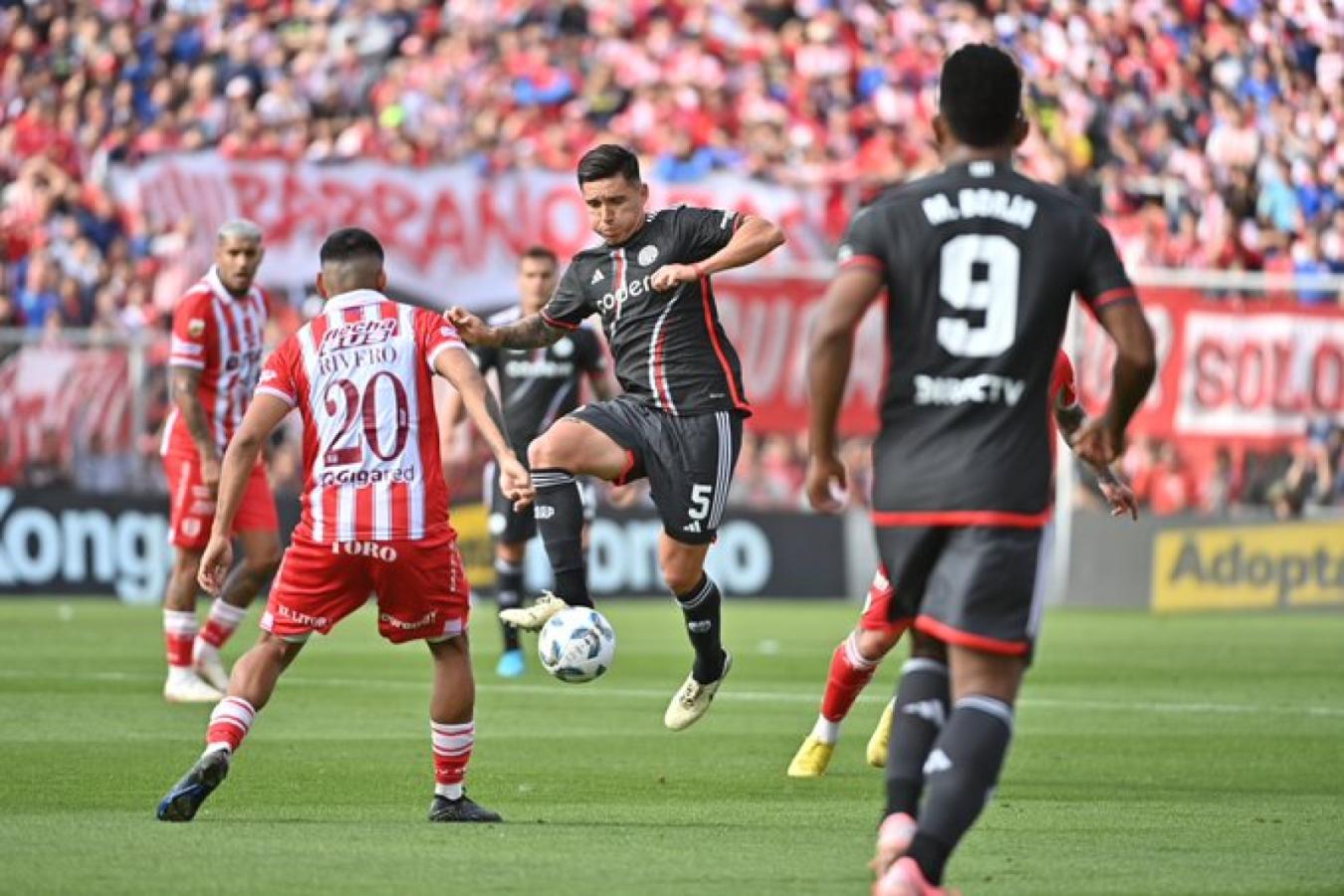 La primera llegada de River fue en pies del mediocampista Franco Mastantuono, cuando a los 10 minutos del primer tiempo quedó mano a mano ante el arquero Thiago Cardozo pero su remate fue muy desviado.