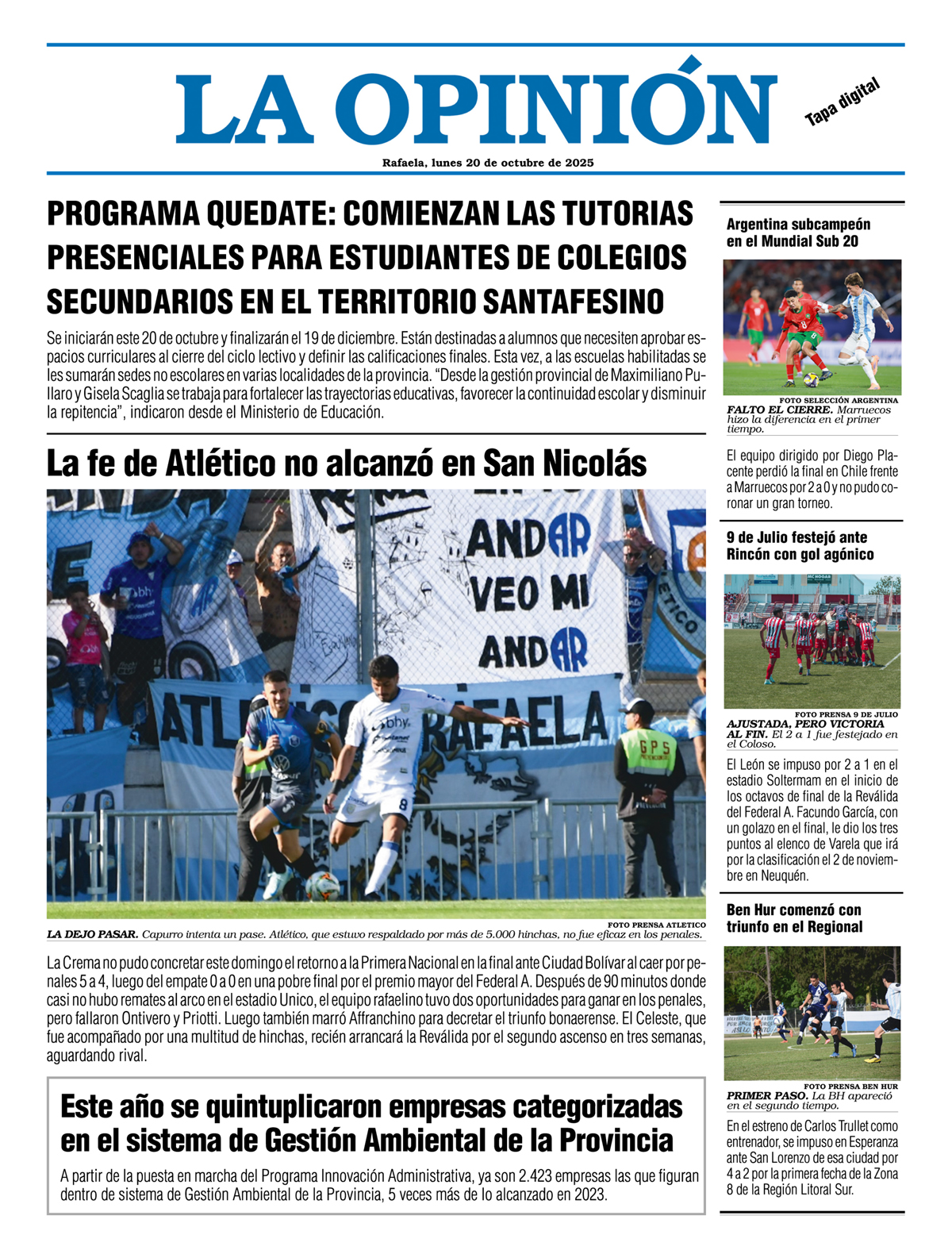 Edición del Lunes 20 de Octubre de 2025 - N° 20