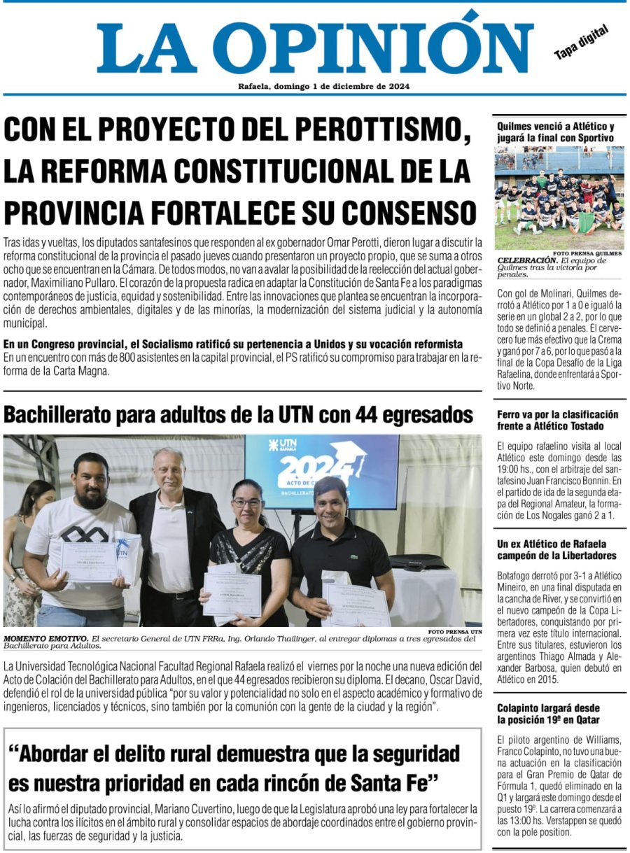 Edición del Domingo 1 de Diciembre de 2024 - N° Tapa 1