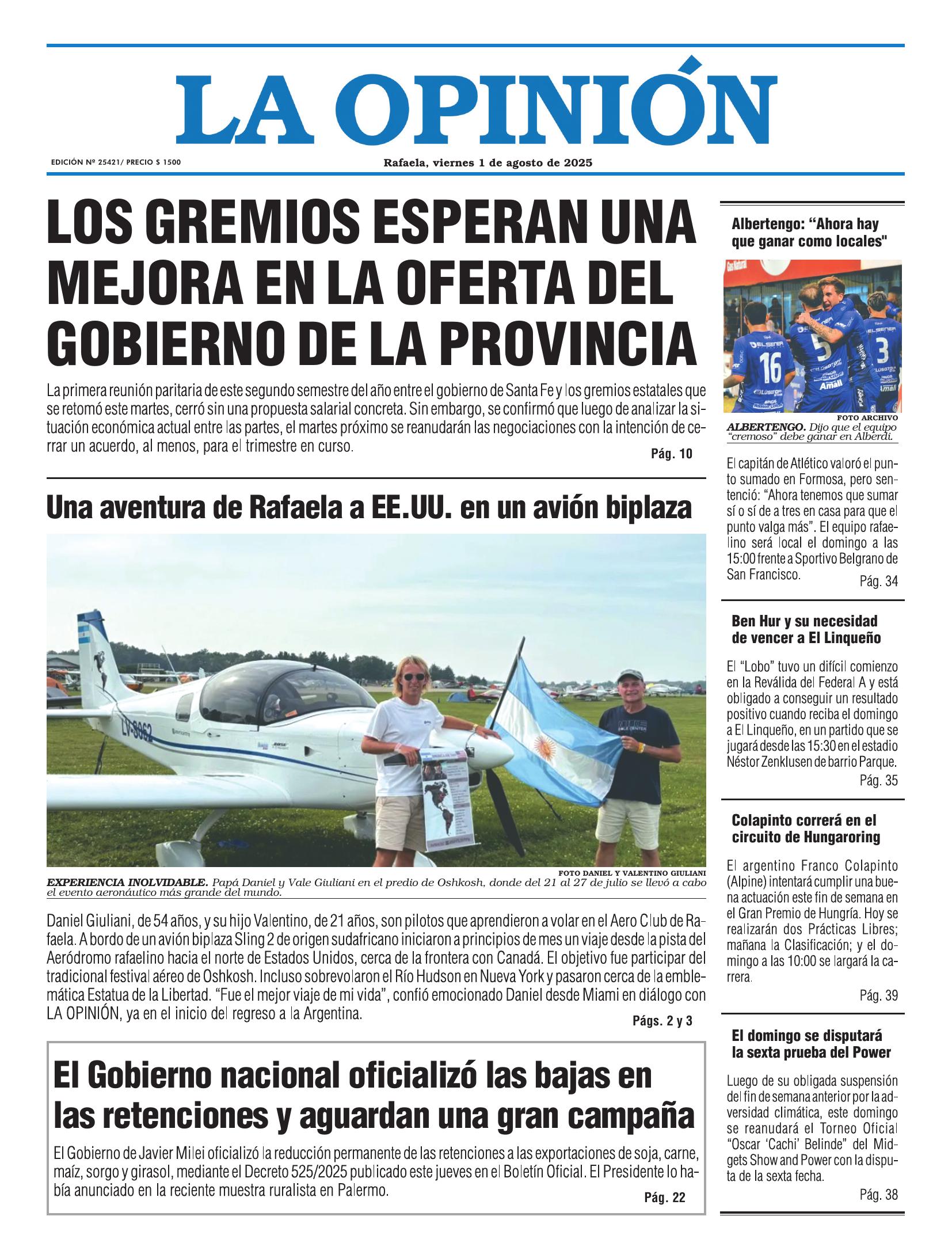 Edición del Viernes 1 de Agosto de 2025 - N° Tapa 1