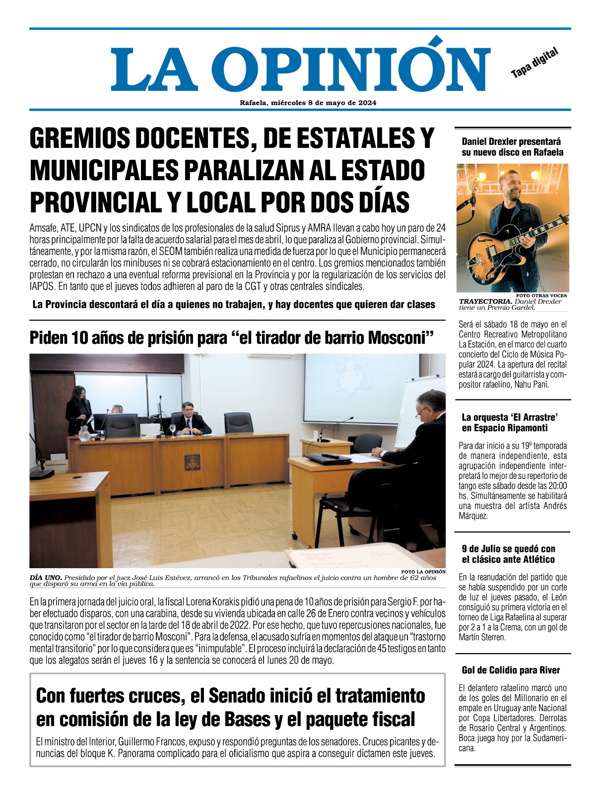 Edición del Miércoles 8 de Mayo de 2024 - N° Tapa