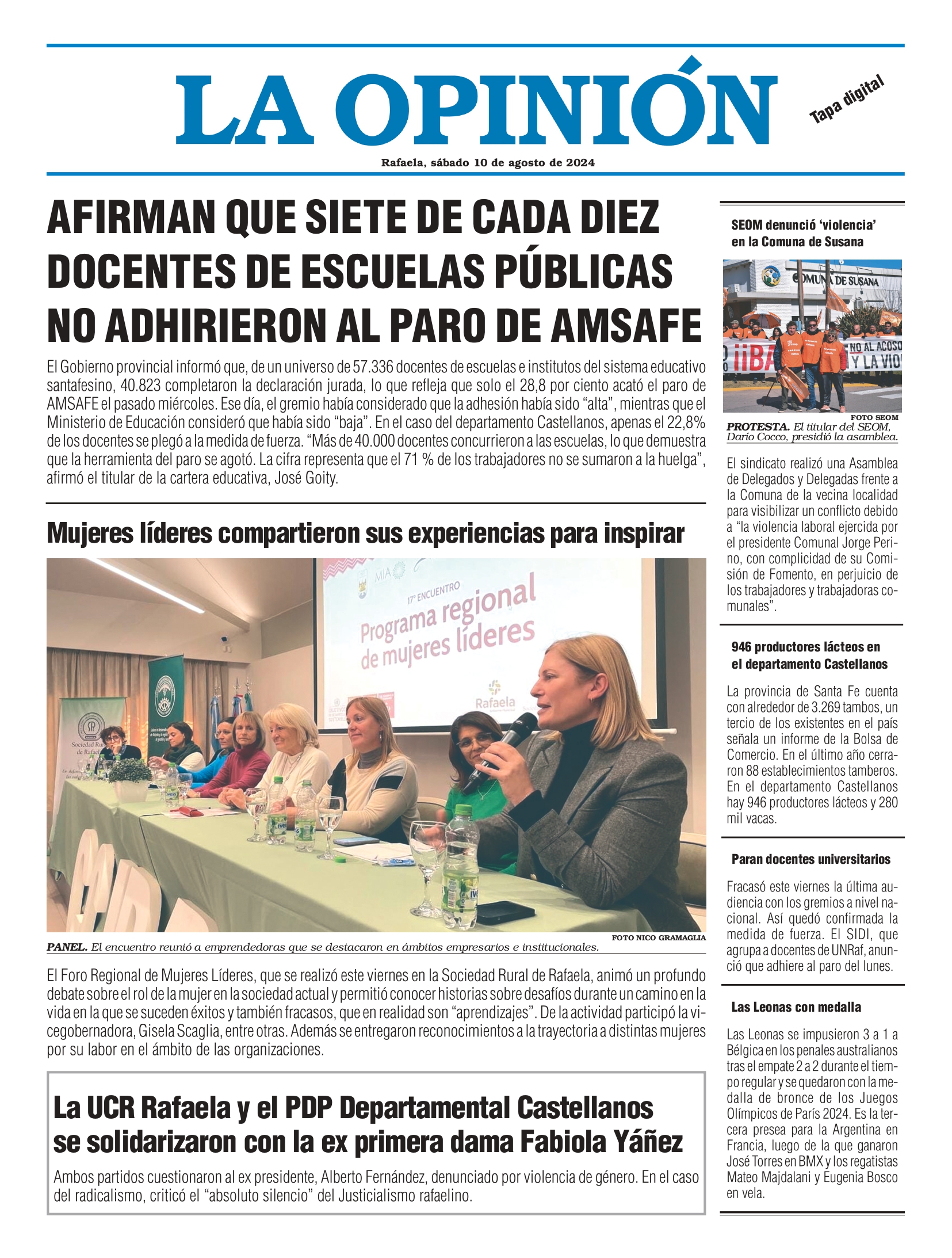 Edición del Sábado 10 de Agosto de 2024 - N° Tapa