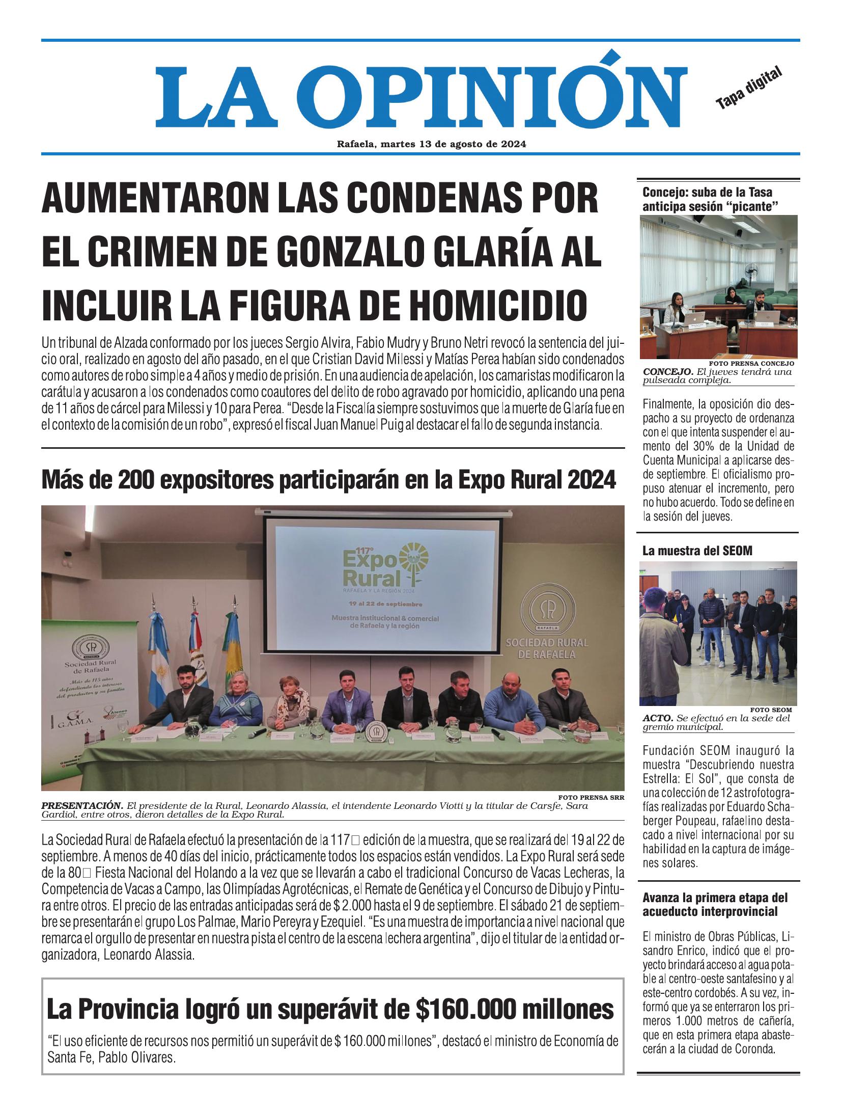 Edición del Martes 13 de Agosto de 2024 - N° Tapa