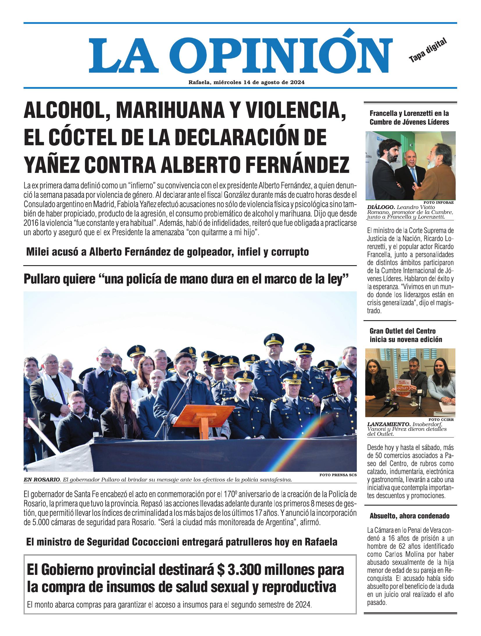 Edición del Miércoles 14 de Agosto de 2024 - N° Tapa