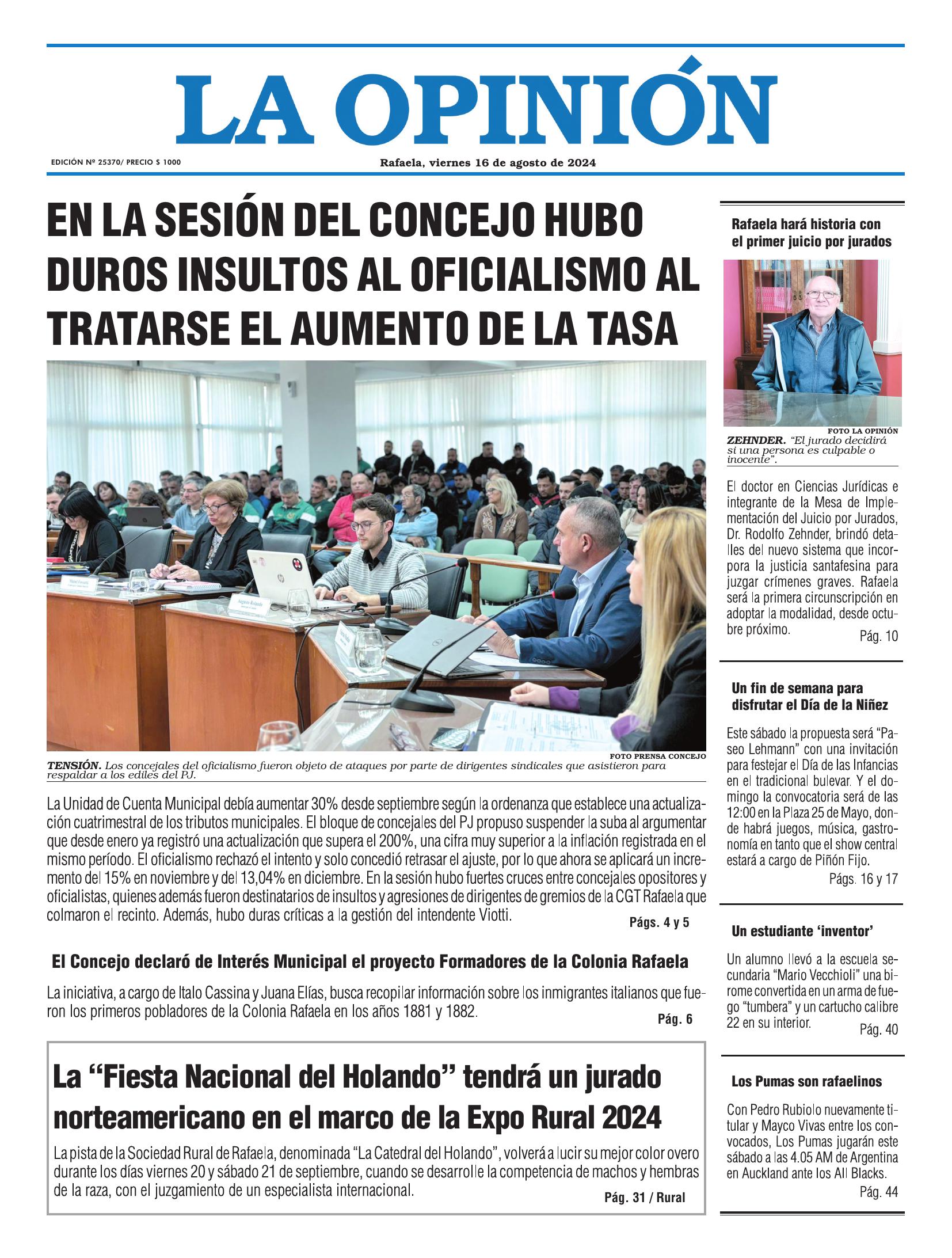 Edición del Viernes 16 de Agosto de 2024 - N° Tapa