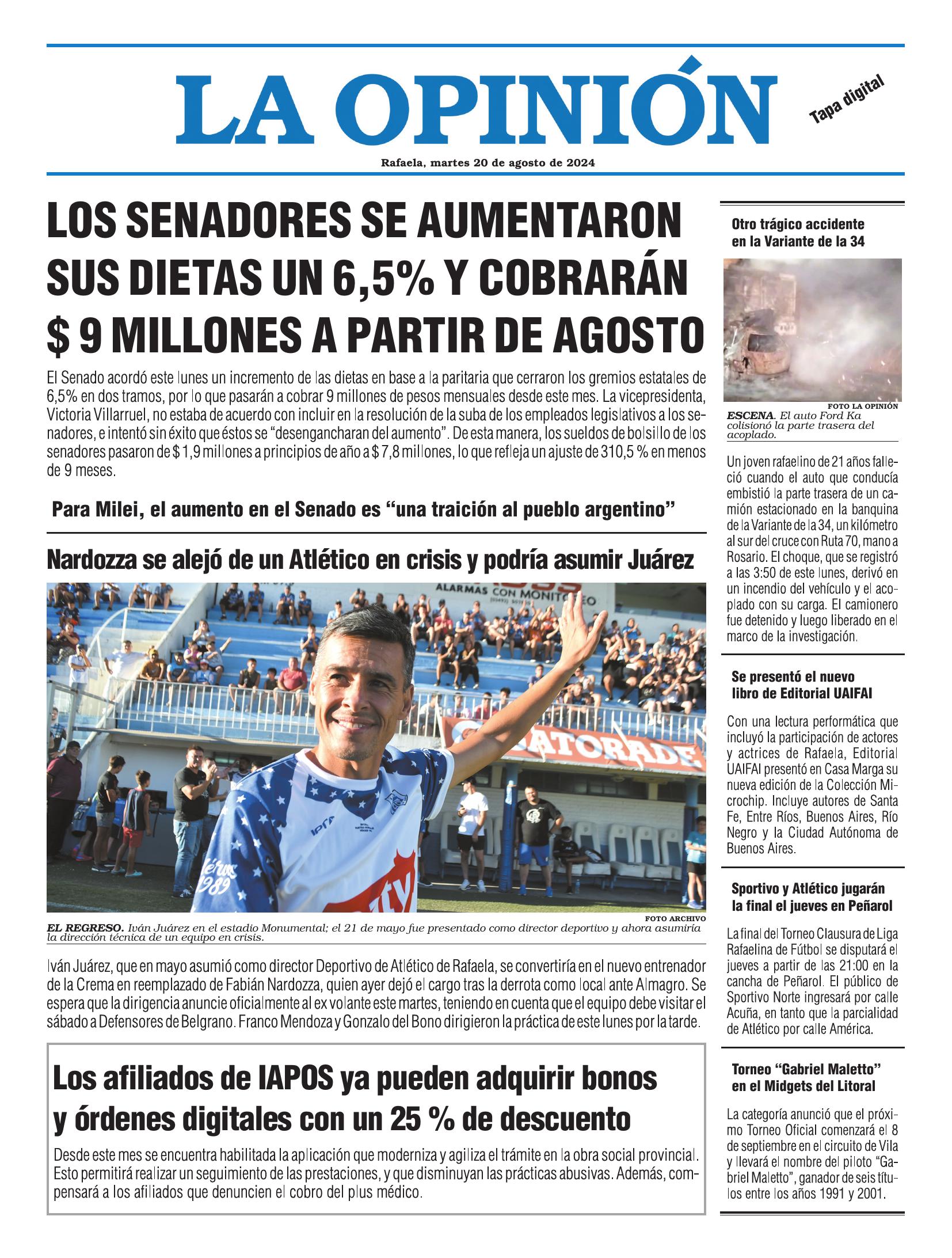 Edición del Martes 20 de Agosto de 2024 - N° Tapa