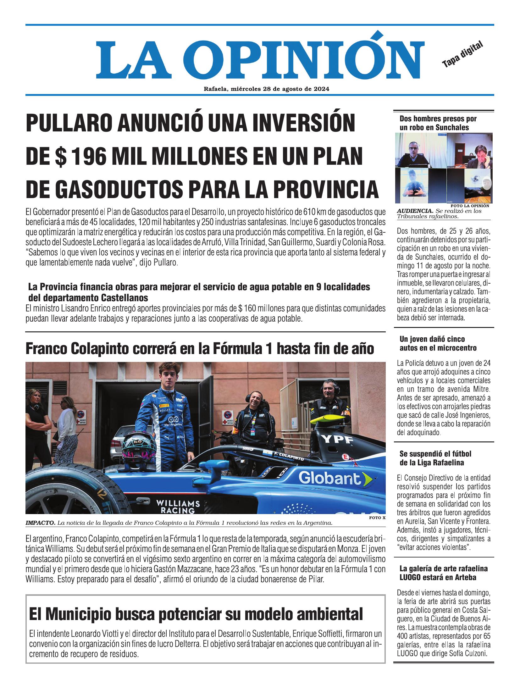Edición del Miércoles 28 de Agosto de 2024 - N° Tapa