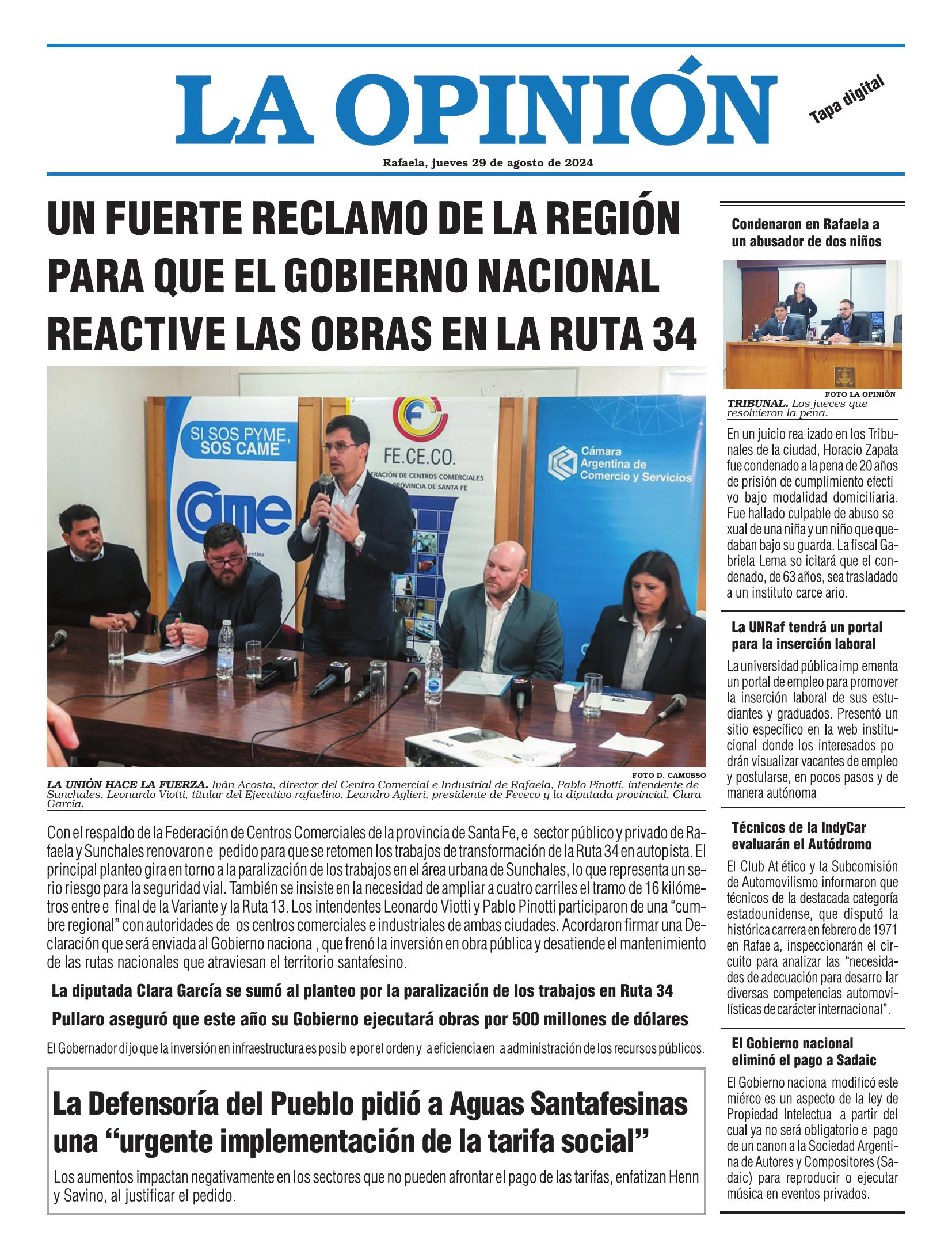 Edición del Jueves 29 de Agosto de 2024 - N° Tapa