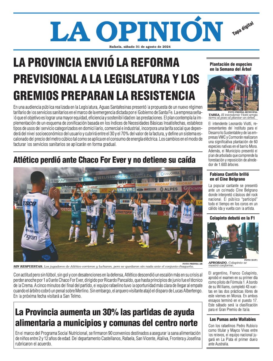 Edición del Sábado 31 de Agosto de 2024 - N° Tapa