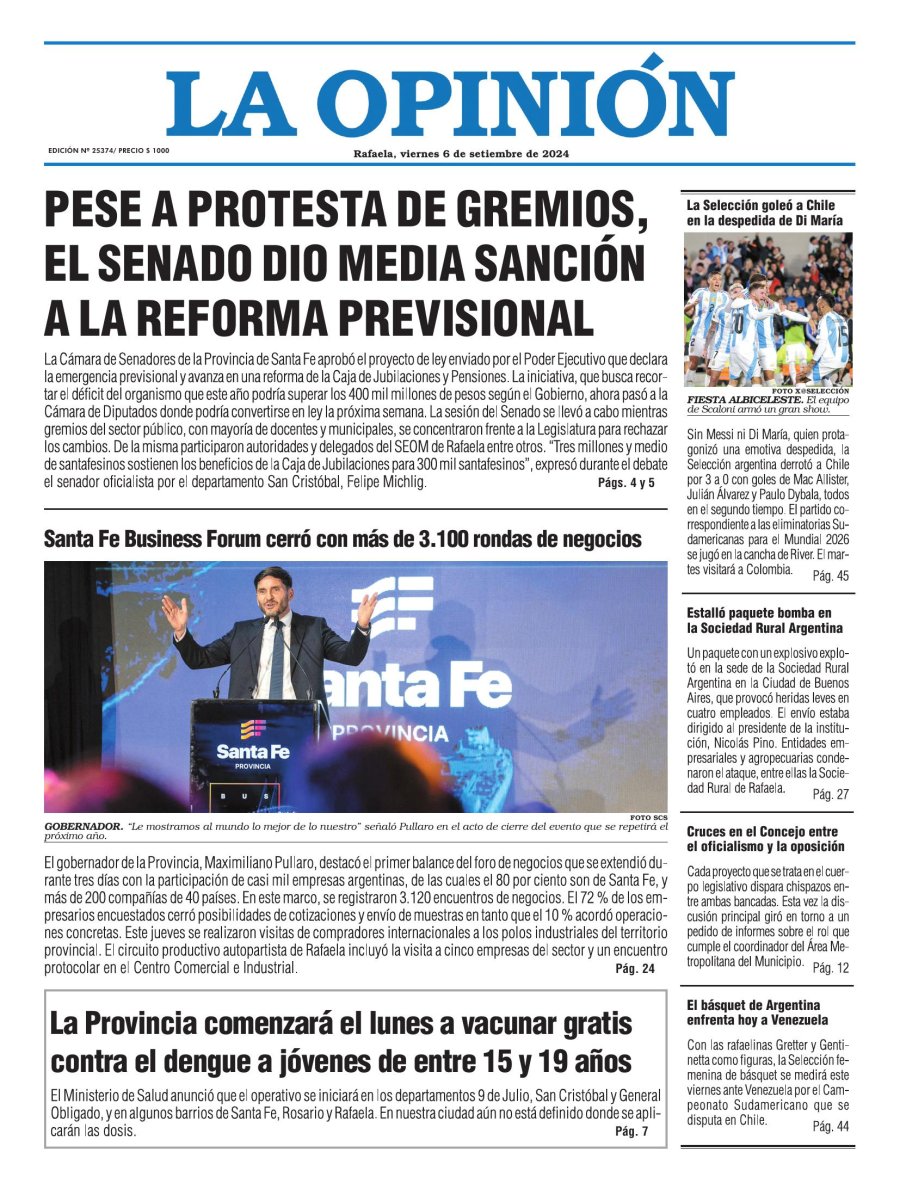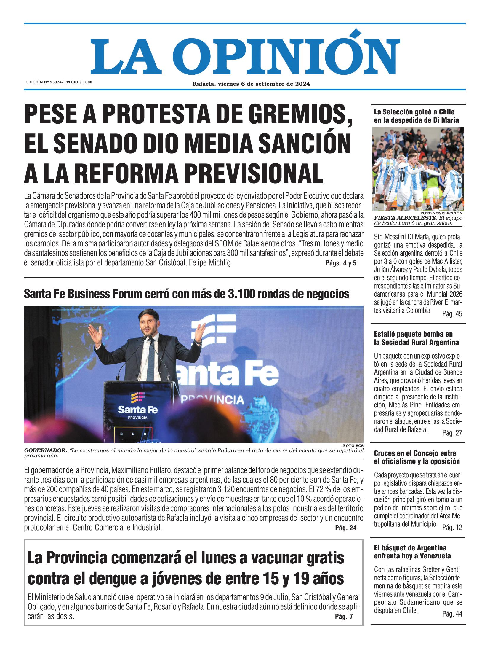 Edición del Viernes 6 de Septiembre de 2024 - N° Tapa