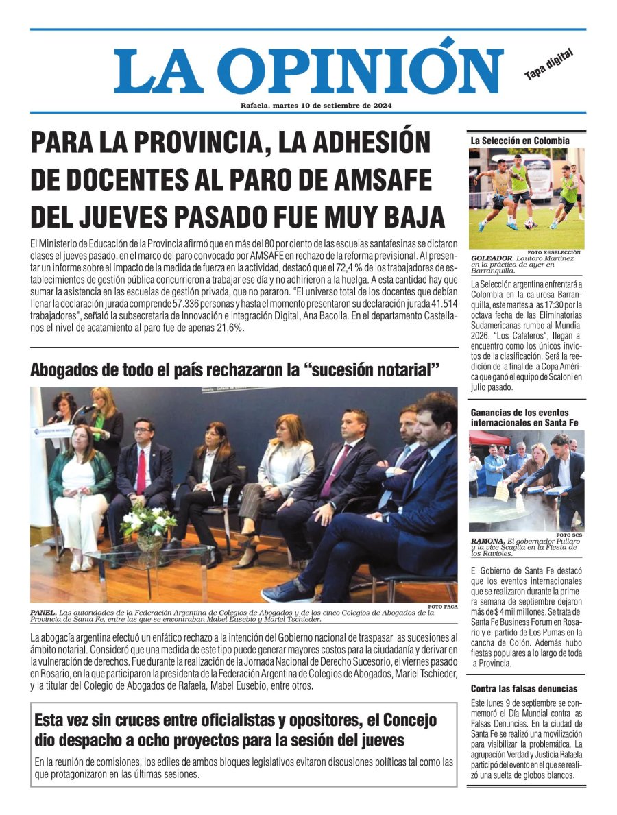 Edición del Martes 10 de Septiembre de 2024 - N° Tapa
