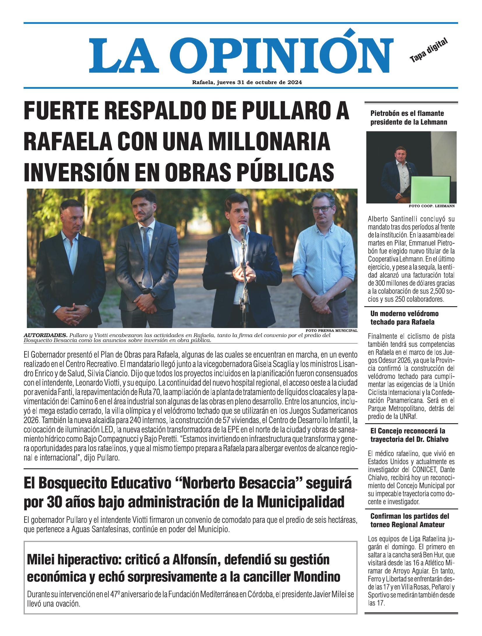 Edición del Jueves 31 de Octubre de 2024 - N° Tapa 31