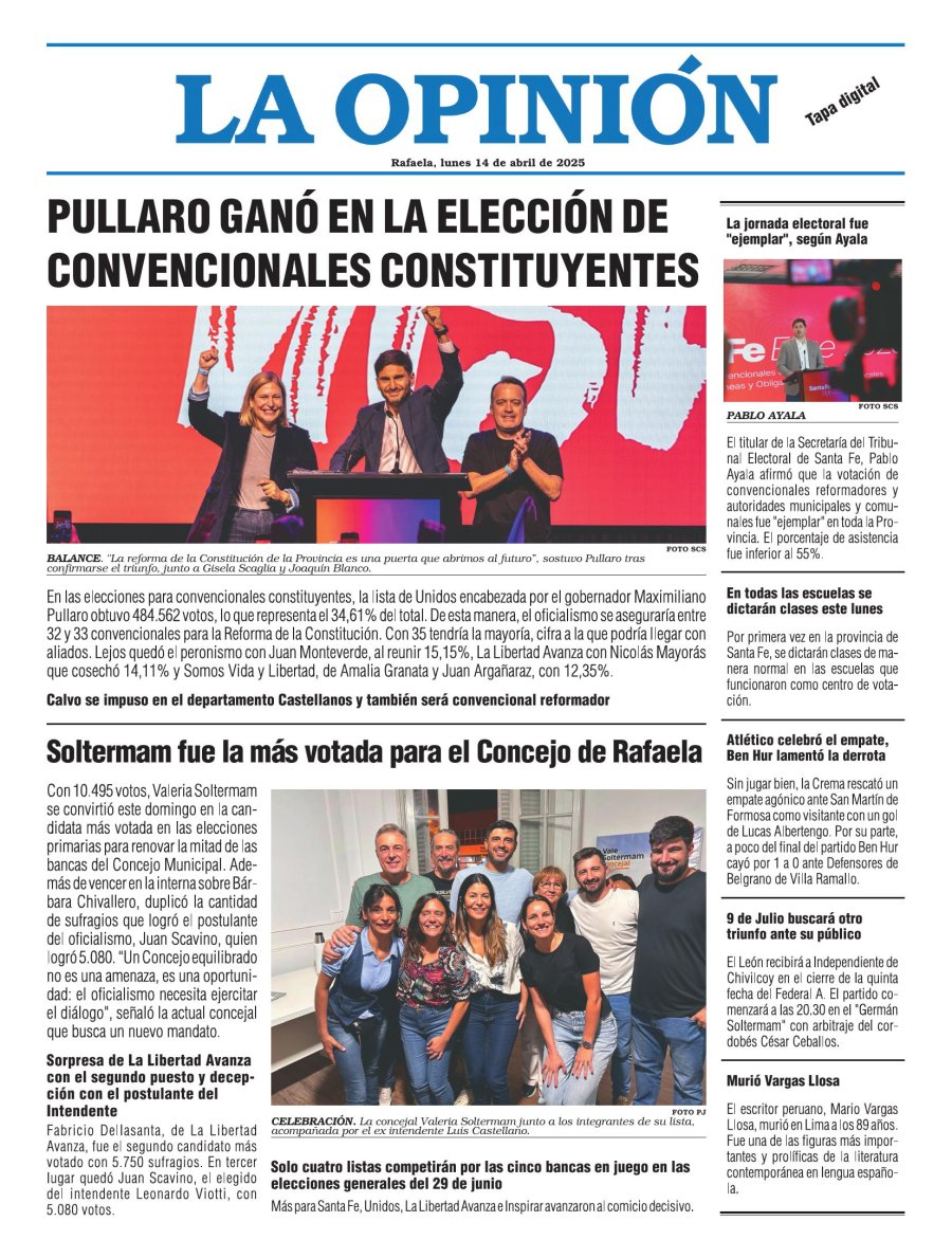 Edición del Lunes 14 de Abril de 2025 - N° Tapa 14
